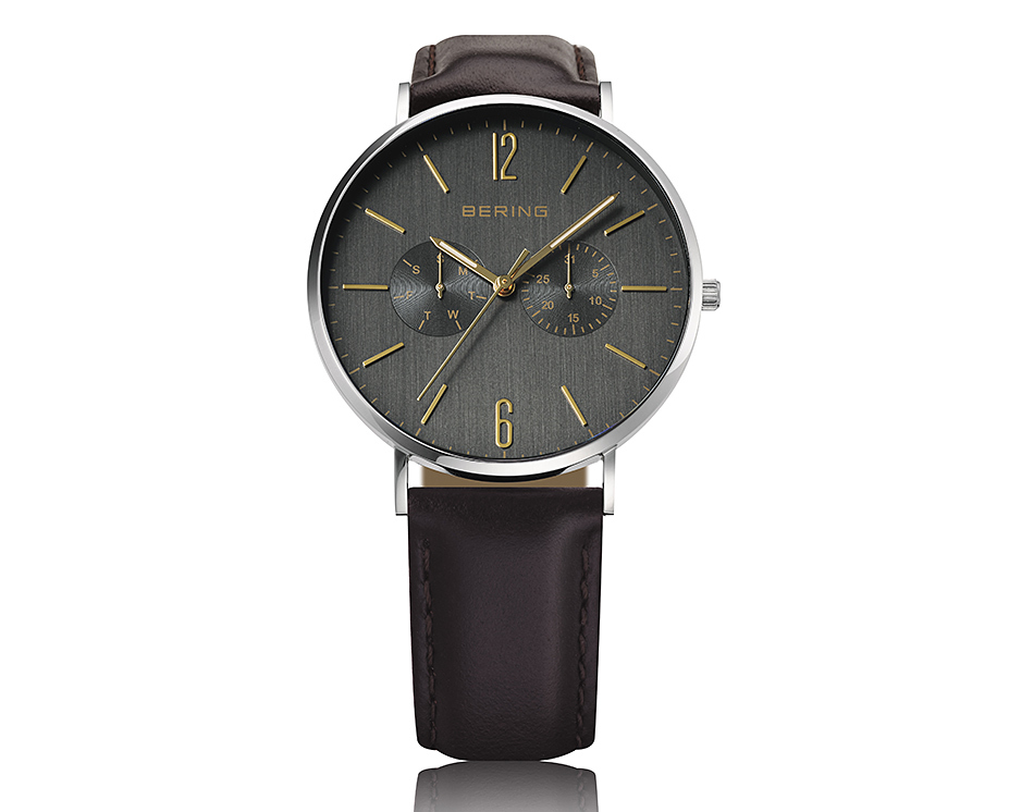 Мужские кварцевые аналоговые наручные часы. Classic Collection. Механизм SEIKO VX36E. Центральные часовая, минутная и секундная стрелки. Серый циферблат с часовыми метками в виде штрихов и двух арабских цифр 6 и 12. Стрелки с люминесцентным покрытием, которое светится в темноте после непродолжительного воздействия света. Число и день недели вынесены на дополнительные малые циферблаты. Число — в позиции 3 ч, день недели в позиции 9 ч.. Круглый стальной полированный корпус. Диаметр корпуса 40 мм. Устойчивое к возникновению мелких царапин плоское сапфировое стекло. Стальной браслет миланского плетения. Ширина браслета 20 мм. Водонепроницаемость WR 30 (защита от брызг). В комплект входит дополнительный кожаный ремешок коричневого цвета.