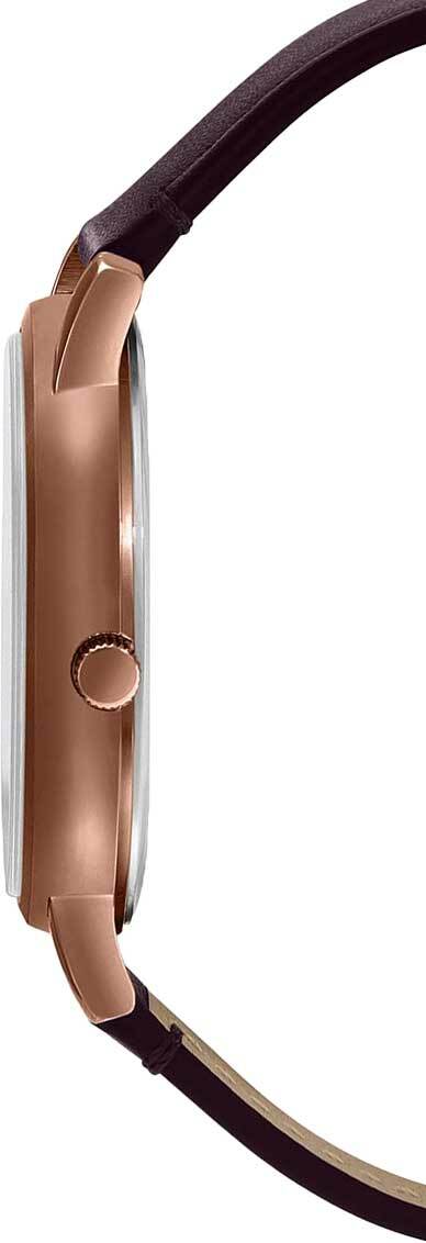 Мужские аналоговые кварцевые часы. Casio Collection. Центральные часовая, минутная и секундная стрелки золотистого цвета. Коричневый циферблат с часовыми метками в виде штрихов. Устойчивое к мелким механическим повреждениям минеральное стекло. Окошко даты в положении 6 ч (значение даты меняется до 31, для месяцев, у которых количество дней меньше 31, необходимо корректировать значение вручную). Окошко дня недели в положении 12 ч. Круглый стальной корпус с покрытием цвета розового золота. Размер корпуса 41 мм на 48 мм, толщина 8,3 мм. Коричневый кожаный ремешок с классической застёжкой buckle. Батарея рассчитана на 3 года. Водонепроницаемость 50 WR (мытьё рук, дождь). Вес около 45 г.