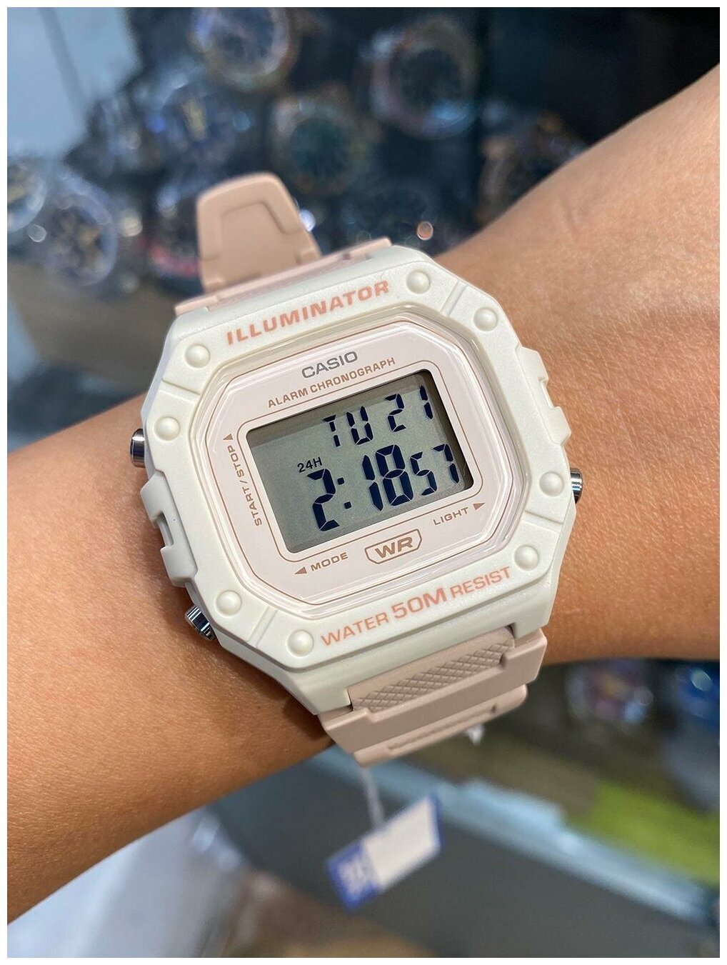 Электронные японские наручные часы со светодиодной подсветкой и 7-летней батареей. Японская компания «Casio» известна созданием портативной электронной и вычислительной техники. В производстве часов «Casio» славится надежным качеством часовых механизмов, производимых, в основном, в Японии, разнообразием встроенных функций, а также широким ассортиментом с четко обозначенными модельными рядами, помогающими покупателю выбрать нужные часы. Все модели объединяет высокая точность, бесперебойная работа механизма, широкий функционал, а также стильный и современный модный дизайн. Тип механизма: кварцевый. Тип батареи: от батарейки. Точность хода: +/-30 секунд в месяц. Способ отображения времени: электронный (цифры). Дисплей защищен пластиковым (акриловым, органическим) стеклом. Оргстекло обладает высокой ударопрочностью. Корпус изготовлен из пластика. Пластик имеет легкий вес, не боится влаги и обладает прочностью. Браслет изготовлен из полимерного материала. Каучук обладает гибкостью, прочностью, гипоаллергенностью, имеет легкий вес, не боится влаги и царапин. Классическая регулируемая застежка с пряжкой. Светодиодная подсветка. Циферблат освещается при помощи светодиода. Цвет подсветки: оранжевый. 12/24-х часовой формат времени. Секундомер с точностью показаний 1/100 с и временем измерения 1 ч. Будильник с ежечасным сигналом. Ежедневный сигнал, ежечасный сигнал. Ежедневный сигнал звучит каждый день в установленное вами время. Число показывает, сколько ежедневных сигналов имеется. Функция ежечасного сигнала обеспечивает подачу часами звукового сигнала при наступлении каждого нового часа. Автоматический календарь (число, день недели). Водонепроницаемость WR 50 (5 bar) - 5 АТМ. Водозащита в часах выдерживает попадание брызг, мытье рук, капли дождя, легкий душ. Батарея рассчитана на 7 лет. Страна производитель: Япония. Гарантия: 2 года.