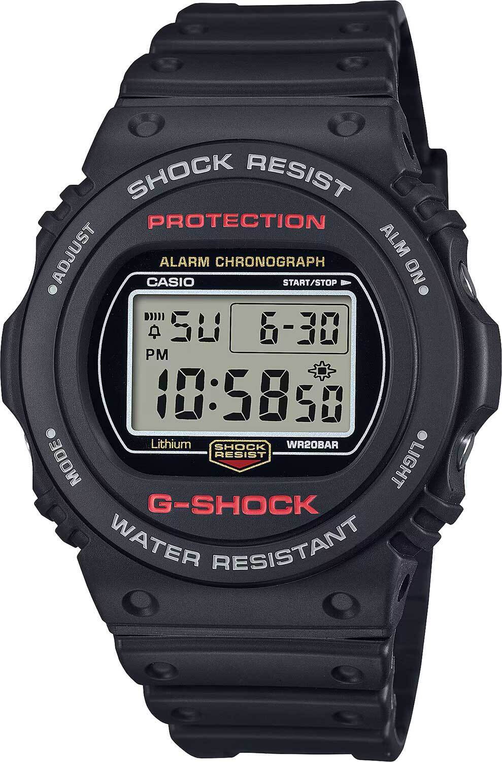 Мужские кварцевые электронные часы. Коллекция G-Shock. Противоударный корпус защищает механизм часов от ударов и вибрации. Светодиодная подсветка с функцией послесвечения. Световой сигнал (LED-индикатор) - светодиодная лампочка мигает при сигнале будильника, окончании таймера обратного отсчета или секундомера. Секундомер с точностью показаний 1/100 секунды (первый час), 1 секунда (через 1 час) и временем измерения 24 часа. Режимы измерения: прошедшее время, промежуточное время, два финишных результата. Таймер обратного отсчета от 1 секунды до 24 часов (с интервалом в 1 секунду, с интервалом в 1 минуту и с интервалом в 1 час) с автоповтором. 12-ти и 24-х часовой формат отображения времени. Многофункциональный будильник, ежедневный звуковой сигнал, индикация начала часа. Автоматический календарь до 2099 г. Круглый корпус из полимерного пластика чёрного цвета. Размер корпуса 45,4 мм на 48,9 мм , толщина 14,1 мм. Чёрный пластиковый ремешок с классической застежкой. Минеральное стекло устойчивое к мелким механическим повреждениям. Батарейка рассчитана на 5 лет. Водостойкость WR 200 (плавание и ныряние без акваланга). Вес примерно 52 г.