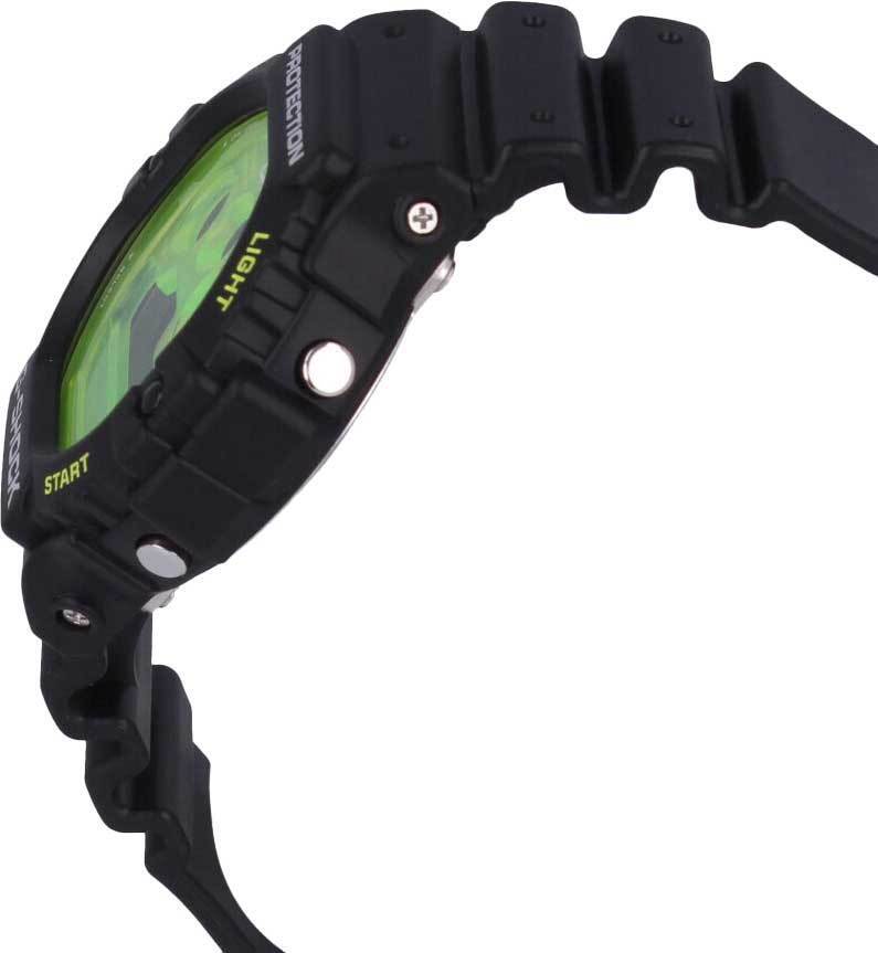 Электронные часы. Электролюминесцентная подсветка обеспечивает освещение всего циферблата. После отпускания кнопки освещение горит еще несколько секунд. Ударопрочная конструкция защищает механизм от ударов и вибрации. Функция мирового времени: 29 часовых зон (48 городов). Секундомер с точностью показаний 1/100 секунды и пределом измерения 1 час. Таймер - время можно предварительно настроить от 1 секунды и до 100 часов. Часы могут затем автоматически начать отсчет в обратную сторону в установленное время. Идеальное решение для людей, которым необходимо ежедневно принимать лекарства или выполнять промежуточные упражнения (тренировки). 5 ежедневных будильников. 12/24-х часовой формат времени. Автоматический календарь. Включение/выключение звука кнопок. Корпус выполнен из пластика черного цвета. Размер корпуса составляет 51,4 x 46,8 х 15,5 мм. Черный ремешок из полимерного материала, стандартная застежка. Прочное минеральное стекло устойчивое к мелким механическим повреждениям. Водостойкость WR 200 (погружение с аквалангом). Вес примерно 60 гр.