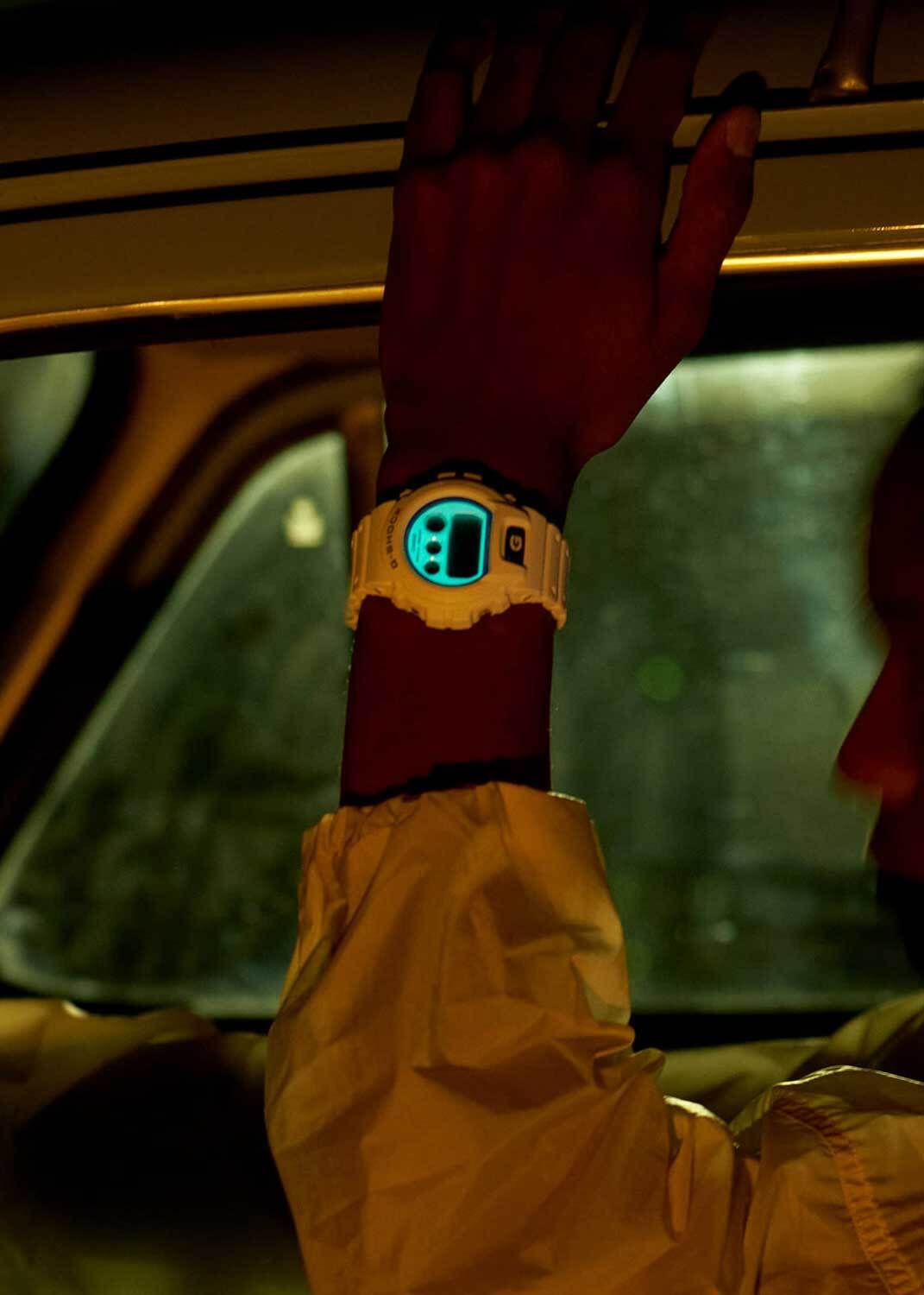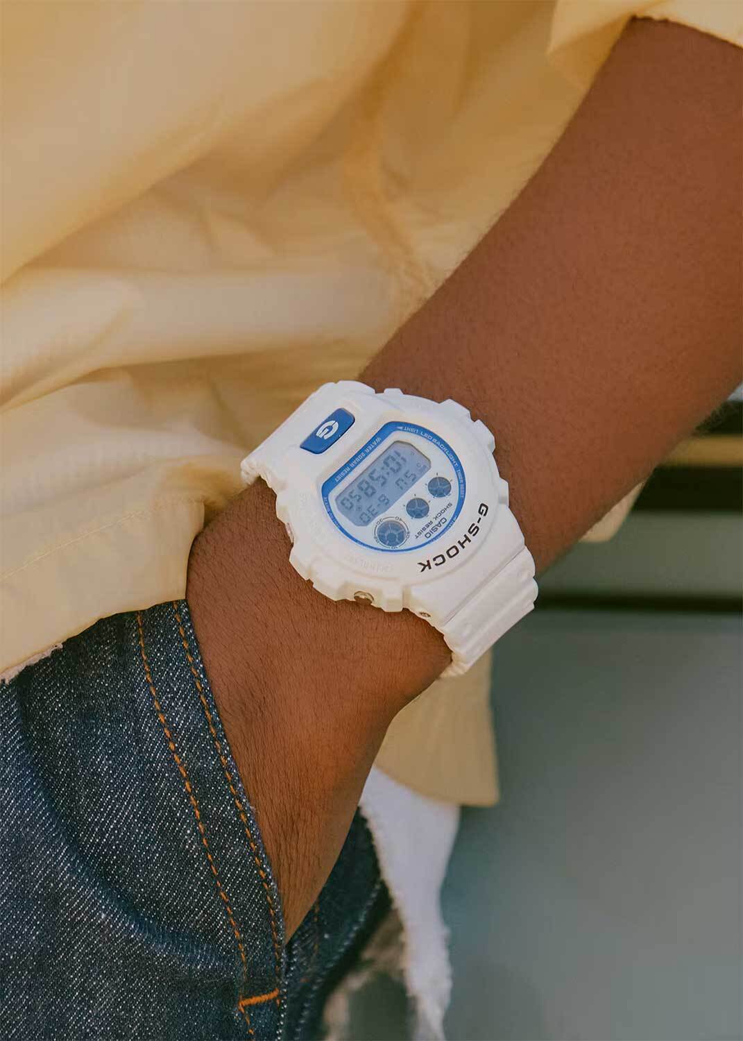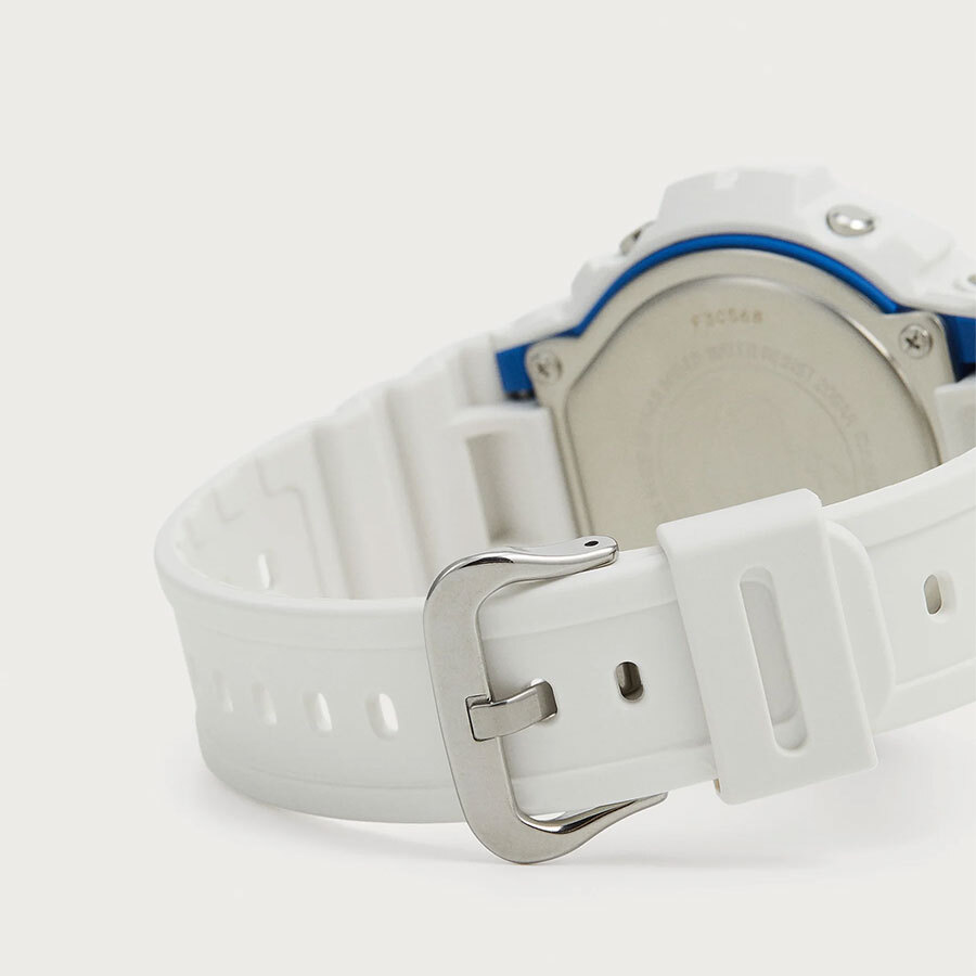 Мужские кварцевые часы с цифровой индикацией времени. Серия G-Shock. Отличительной чертой серии является люминесцентный циферблат с фосфоресцирующим эффектом, напоминающим сияние биолюминесцентного планктона в море. Противоударный корпус защищает механизм часов от ударов и вибрации. Светодиодная подсветка с функцией послесвечения. Светонакопительное покрытие циферблата обеспечивает длительное послесвечение в темноте даже после кратковременного воздействия света. Световая индикация сигнала (LED-индикатор) - светодиодная лампочка мигает при сигнале будильника, окончании таймера обратного отсчета или секундомера. Секундомер с точностью показаний 1/100 секунды (первый час), 1 секунда (через 1 час) и временем измерения 24 часа. Режимы измерения: прошедшее время, промежуточное время, два финишных результата. Таймер обратного отсчета от 1 секунды до 24 часов с автоповтором. 12-ти и 24-х часовой формат отображения времени. Многофункциональный будильник, ежедневный звуковой сигнал, индикация начала часа. Автоматический календарь до 2099 г. Круглый корпус из полимерного пластика белого цвета. Размер корпуса 50 мм на 53,2 мм , толщина 16,3 мм. Белый пластиковый ремешок с классической застежкой buckle. Минеральное стекло устойчивое к мелким механическим повреждениям. Батарейка рассчитана на 5 лет. Водонепроницаемость WR200 (плавание и ныряние без акваланга). Вес около 67 г.