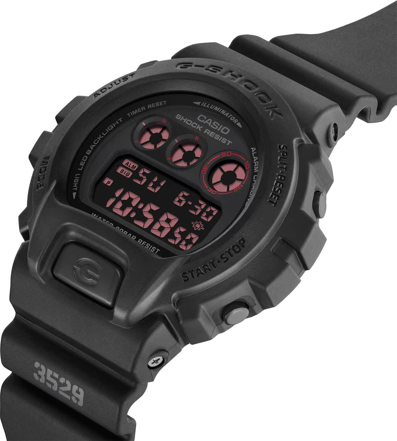 Мужские кварцевые электронные часы. Коллекция G-Shock. Противоударный корпус защищает механизм часов от ударов и вибрации. Светодиодная подсветка с функцией послесвечения. Световой сигнал (LED-индикатор) - светодиодная лампочка мигает при сигнале будильника, окончании таймера обратного отсчета или секундомера. Секундомер с точностью показаний 1/100 секунды (первый час), 1 секунда (через 1 час) и временем измерения 24 часа. Режимы измерения: прошедшее время, промежуточное время, два финишных результата. Таймер обратного отсчета от 1 секунды до 24 часов (с интервалом в 1 секунду, с интервалом в 1 минуту и с интервалом в 1 час) с автоповтором. 12-ти и 24-х часовой формат отображения времени. Многофункциональный будильник, ежедневный звуковой сигнал, индикация начала часа. Автоматический календарь до 2099 г. Круглый корпус из полимерного пластика чёрного цвета. Размер корпуса 50 мм на 53,2 мм , толщина 18,7 мм. Чёрный пластиковый ремешок с классической застежкой. Минеральное стекло устойчивое к мелким механическим повреждениям. Батарейка рассчитана на 5 лет. Водостойкость WR 200 (плавание и ныряние без акваланга). Вес примерно 67 г.