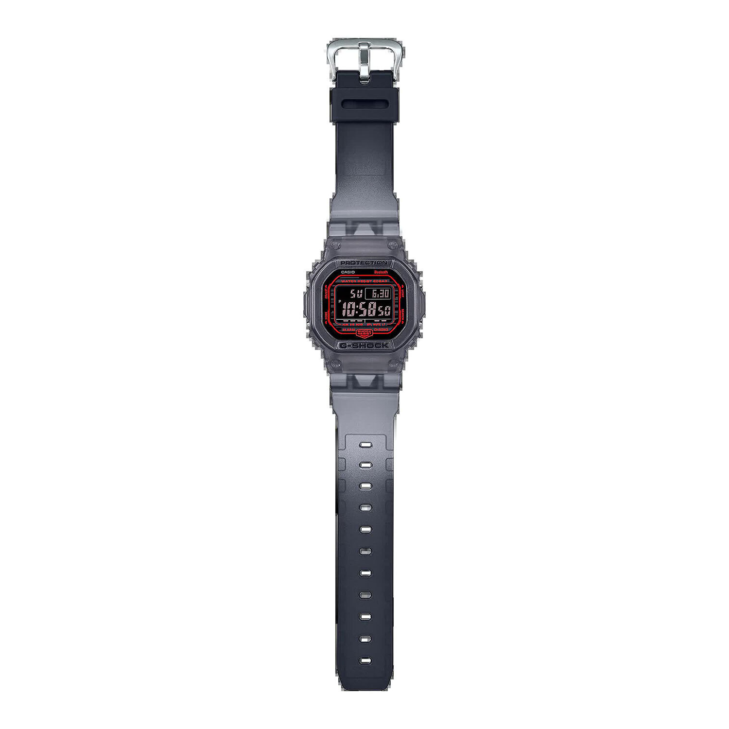 Мужские электронные часы. Часы оснащены технологией Bluetooth. Если часы подключены к смартфону, время устанавливается автоматически и отображается текущее время. Сверхмощная автоматическая подсветка LED. Функция мирового времени. Черный циферблат с красными элементами. Секундомер с точностью показаний 1/100 секунды и пределом измерения 24 часа. Таймер - время можно предварительно настроить от 1 секунды и до 100 часов. Часы могут затем автоматически начать отсчет в обратную сторону в установленное время. Идеальное решение для людей, которым необходимо ежедневно принимать лекарства или выполнять промежуточные упражнения (тренировки). 12/24х часовой формат времени. 5 ежедневных будильников. Включение/выключение звука кнопок. Функция поиска телефона. Многоязычность. Ежечасный сигнал. Автоматический календарь. Ударопрочная конструкция защищает от ударов и вибрации. Корпус выполнен из полимерного пластика серого цвета. Размер корпуса составляет 42,8 x 48,9 x 13,4 мм. Серый ремешок из полимерного материала, стандартная застежка. Прочное минеральное стекло устойчивое к мелким механическим повреждениям. Водостойкость WR 200 (погружение с аквалангом). Вес примерно 55 гр.