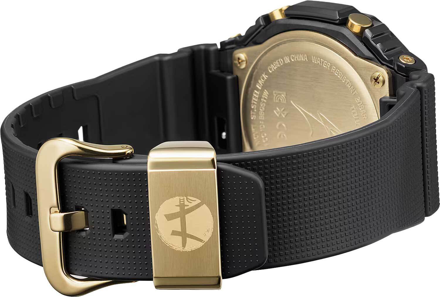 Мужские кварцевые аналого-цифровые наручные часы. Серия G-Shock x Rui Hachimura. Модель создана совместно с Руи Хатимурой (Rui Hachimura) — японским профессиональным баскетболистом, выступающим за команду «Лос-Анджелес Лейкерс» в Национальной баскетбольной ассоциации. Логотип Хатимуры «Черный самурай» выгравирован на стальной петле ремешка и кнопке в положении «8 часов». Логотип сочетает в себе символ 八 (hachi по-японски «восемь» - номер, под которым играет Руи Хатимура ) с японским мечом. Подпись Хатимуры выгравирована на задней крышке часов. Весь циферблат часов выполнен в мотиве баскетбольной площадки. Черно-красный цвет ЖК-дисплея вдохновлен 24-секундным таймером для броска в игре. Противоударный корпус защищает механизм часов от ударов и вибрации. Питание от солнечной энергии Tough Solar - источником питания служит светочувствительная панель и аккумулятор, заряжаемый при попадании солнечного света на циферблат часов. Индикатор уровня заряда батареи. Функция автоматического сохранения энергии. Время работы аккумулятора без подзарядки около 7 месяцев, при включенной функции сохранения энергии около 18 месяцев. Двойная светодиодная подсветка обеспечивает подсветку не только аналогового циферблата, но и цифрового дисплея. Настраиваемое послесвечение 1,5 с или 3 с. Необритовое светонакопительное покрытие стрелок обеспечивает длительное послесвечение в темноте даже после кратковременного воздействия света. 12-ти и 24-х часовой формат отображения времени. Секундомер с точностью измерения 1/100 секунды (в течение первого часа) и 1 секунда (через 1 час) и временем измерения 24ч. Режимы измерения: прошедшее время, время прохождения части и круга дистанции. Таймер обратного отсчета от 1с до 1часа. Мировое время – 38 городов (38 часовых поясов), всемирное координированное время (UTC). Функция включения/отключения летнего времени, переключение между домашним и мировым временем. Часы оснащены беспроводной технологией Bluetooth® со сверхнизким потреблением энергии для синхронизации со смартфоном. При подключении к смартфону часы автоматически корректируют текущее время , в том числе переход на зимнее/летнее время, копируют настройки мирового времени более чем для 300 городов и получают доступ к ряду полезных функций. Функция поиска телефона. Функция отключения/включения звука кнопок. Функция перемещения стрелок для удобного просмотра информации на цифровом дисплее. 5 ежедневных будильников, почасовой сигнал времени. Автоматический календарь до 2099 г. Золотистый циферблат с часовыми метками в виде штрихов украшен узором в виде баскетбольной площадки. Устойчивое к мелким механическим повреждениям минеральное стекло. Восьмиугольный корпус со стальным безелем с покрытием чёрного цвета. Размеры корпуса 49,3 мм на 44,4 мм , толщина 11,9 мм. Стальная задняя крышка. Чёрный ремешок из биопластика (изготавливается из возобновляемых органических ресурсов) с классической застежкой buckle. Водонепроницаемость 200 WR (плавание и ныряние без акваланга). Вес около 78 г. Часы поставляются в специальной упаковке.