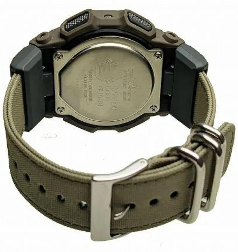 Мужские кварцевые электронные наручные часы. Серия G-Shock. Противоударный корпус из биопластика (изготавливается из возобновляемых органических ресурсов) с углеродными волокнами (структура Carbon Core Guard) более прочный и в то же время более легкий, защищает механизм часов от ударов и вибраций. Циферблат подсвечивается светодиодом, послесвечение. 12-ти и 24-х часовой формат отображения времени. Секундомер с точностью показаний 1/100 с и временем измерения 24 часа. Режимы измерения: прошедшее время, промежуточное время, два финишных результата. Таймер обратного отсчета от от 1 с до 24 ч. Мировое время - 31 часовой пояс (48 городов), всемирное координированное время (UTC), включение/отключение летнего времени. Переключение между домашним и мировым временем. Возможность выбора до 4 городов в качестве избранных. 5 будильников, ежечасный сигнал. Функция отключения/включения звука кнопок. Автоматический календарь до 2099 года. Усиленный углеродными волокнами корпус из биопластика бежевого цвета. Размер корпуса 51,9 мм на 54,9мм, толщина 16,1мм. Устойчивое к мелким механическим повреждениям минеральное стекло. Бежевый тканевый ремешок Cordura с классической застежкой buckle. Ткань Кордура (CORDURA®) - плотная нейлоновая ткань производства компании INVISTA, отличается повышенной прочностью на разрыв, устойчивостью к истиранию и долговечностью. Батарея рассчитана на 10 лет. Водонепроницаемость 200WR (плавание и ныряние без акваланга). Вес около 73 г.