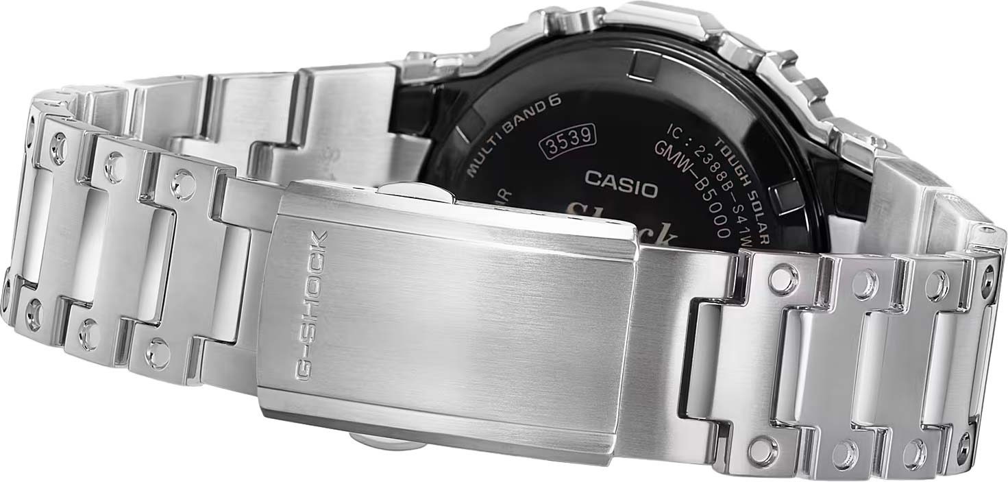 Мужские кварцевые наручные часы с цифровым отображением времени. Серия G-Shock. Данная модель собирается только в Японии на производстве Casio в Ямагата. Ударопрочная конструкция защищает механизм часов от деформации при ударах. Модуль часов снабжен элементами из материала alphaGEL, который еще лучше защищает механизм от сотрясения и вибрации. АlphaGEL представляет собой гибкую силиконовую прослойку, оказывающую амортизирующий эффект. Питание от солнечной энергии (технология Tough Solar) - источником питания служит светочувствительная панель и аккумулятор, заряжаемый при попадании солнечного света на циферблат часов. Индикатор уровня заряда батареи. Функция автоматического сохранения энергии. Время работы аккумулятора без подзарядки до 10 месяцев, при включенной функции сохранения энергии до 22 месяцев. Дисплей подсвечивается светодиодом, настраиваемая продолжительность свечения 2 или 4 секунды, послесвечение. Технология Multi band 6 позволяет осуществлять автоматическую синхронизацию и коррекцию времени с помощью радиосигнала на территории почти всей Европы, США, Японии и Китая. Часы оснащены беспроводной технологией Bluetooth® со сверхнизким потреблением энергии для синхронизации со смартфоном. При подключении к смартфону часы автоматически корректируют текущее время, в том числе переход на зимнее/летнее время, копируют настройки мирового времени более чем для 300 городов и получают доступ к ряду полезных функций. Память журнала полетов (Flight Log Memory) - нажатием кнопки фиксируется время и положение на карте приложения. Мировое время – 39 городов (39 часовых поясов), всемирное координированное время (UTC). Возможность выбора до 5 городов в качестве избранных в WorldTime. Автоматический переход на зимнее и летнее время, возможность включения/отключения данной функции. 12-ти и 24-х часовой формат отображения времени. Секундомер с точностью показаний 1/100 секунды (первые 60 минут) и 1 секунда (через 60 минут) и временем измерения 24 часа. Режимы измерения: прошедшее время, промежуточное время, два финишных результата. Таймер обратного отсчета от 1 секунды до 24 часов. Функция включения/отключения звука кнопок. 5 ежедневных будильников, один с функцией повтора сигнала Snooze, почасовой сигнал времени. Функция поиска телефона. Автоматический календарь до 2099 г, возможность отображения дней недели на 6-ти языках. Устойчивое к мелким механическим повреждениям минеральное стекло. Прямоугольный корпус из нержавеющей стали с чёрным IP покрытием на безеле. Размеры корпуса 49,3мм на 43,2 мм, толщина 13 мм. Завинчивающаяся задняя крышка с DLC-покрытием (Diamond Like Coating ) для обеспечения устойчивости к износу. Стальной браслет с тройной раскладывающейся застежкой. Водонепроницаемость WR 200 (часы подходят для плавания с маской, трубкой, обычного плавания). Вес около 167 г