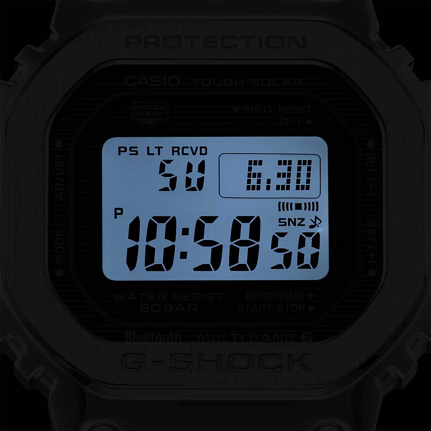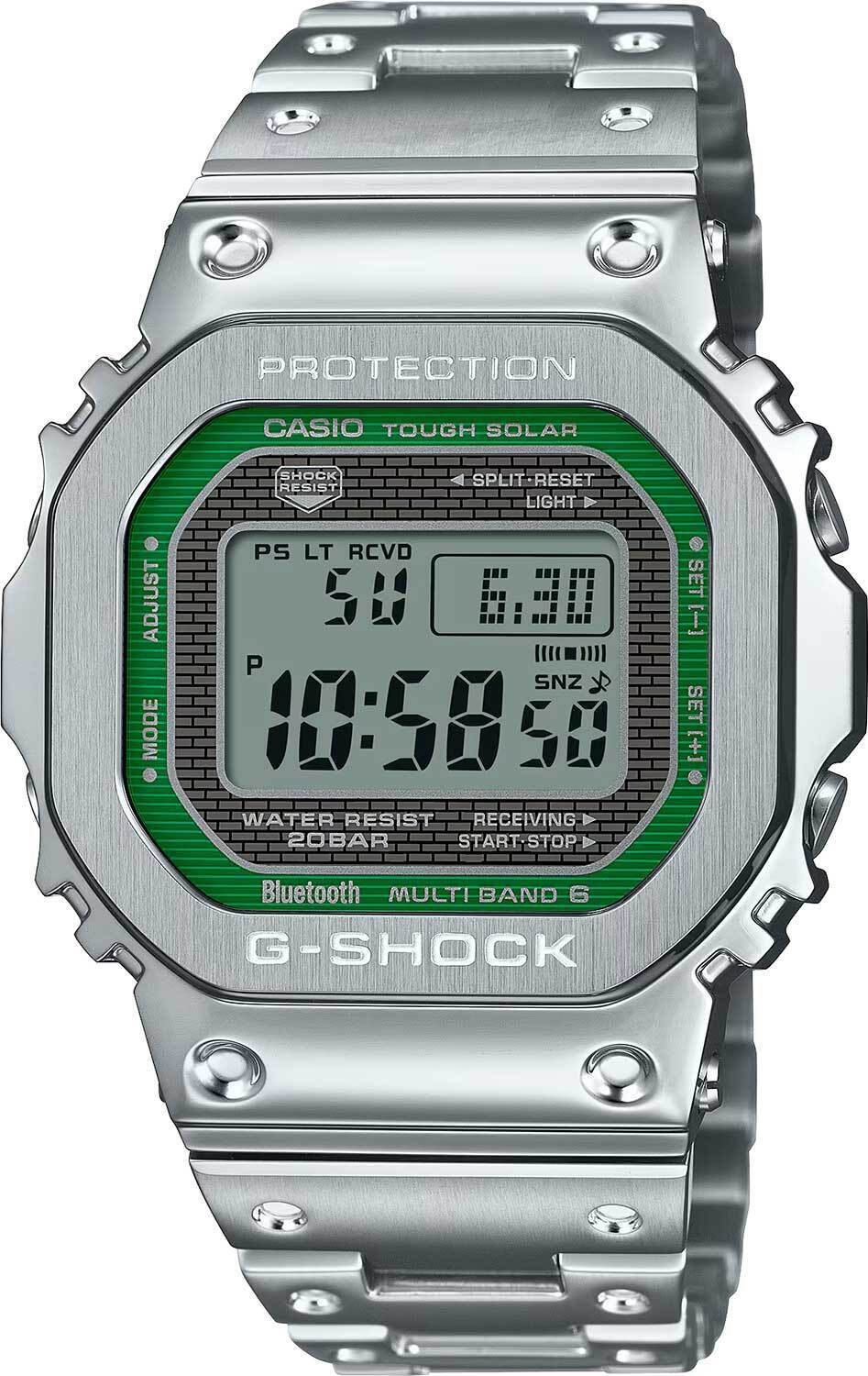 Мужские кварцевые электронные наручные часы. Серия G-Shock. Ударопрочная конструкция защищает механизм часов от деформации при ударах и вибрации. Модуль часов снабжен элементами из материала alphaGEL, который еще лучше защищает механизм от сотрясения и вибрации. АlphaGEL представляет собой гибкую силиконовую прослойку, оказывающую амортизирующий эффект. Питание часов от солнечной энергии Tough Solar - в часах источником питания служит светочувствительная панель и аккумулятор, заряжаемый при попадании солнечного света на дисплей часов. Индикатор уровня заряда батареи. Функция энергосбережения (в темноте дисплей гаснет для экономии энергии). Срок работы аккумулятора без подзарядки около 10 месяцев, при включенной функции сохранения энергии до 22 месяцев. Дисплей подсвечивается светодиодом, настраиваемая продолжительность свечения 2 с или 4 с, послесвечение. Технология Multi band 6 позволяет осуществлять автоматическую синхронизацию и коррекцию времени с помощью радиосигнала на территории почти всей Европы, США, Японии и Китая. Часы оснащены беспроводной технологией Bluetooth® со сверхнизким потреблением энергии для синхронизации со смартфоном. При подключении к смартфону через приложение SHOCK-Connected G часы автоматически корректируют текущее время в том числе переход на зимнее/летнее время, копируют настройки мирового времени более чем для 300 городов и получают доступ к ряду полезных функций. Функция поиска телефона. Память журнала полетов - нажатием кнопки фиксируется время и положение на карте приложения. Мировое время – 39 городов (39 часовых поясов), всемирное координированное время (UTC). Возможность выбора до 5 городов в качестве избранных в WorldTime. Автоматический переход на зимнее и летнее время, возможность включения/отключения данной функции. Переключение между домашним и мировым временем. 12-ти и 24-х часовой формат отображения времени. Секундомер с точностью измерения 1/100 секунды (первые 60 минут) и 1 секунда (через 60 минут) и временем измерения 24 ч. Режимы измерения: прошедшее время, промежуточное время, два финишных результата. Таймер обратного отсчета от 1 с до 24 ч. Функция включения/отключения звука кнопок. 5 ежедневных будильников (один с функцией повтора сигнала), почасовой сигнал времени. Автоматический календарь до 2099 г, возможность отображения дней недели на 6-ти языках. Устойчивое к мелким механическим повреждениям минеральное стекло. Прямоугольный цельнометаллический корпус из нержавеющей стали. Размеры корпуса 49,3мм на 43,2 мм, толщина 13 мм. Завинчивающаяся задняя крышка с DLC-покрытием (Diamond Like Coating ) для обеспечения устойчивости к износу. Стальной браслет с раскладывающейся тройной застежкой. Водонепроницаемость WR 200 (плавание и ныряние без акваланга). Вес около 167 г