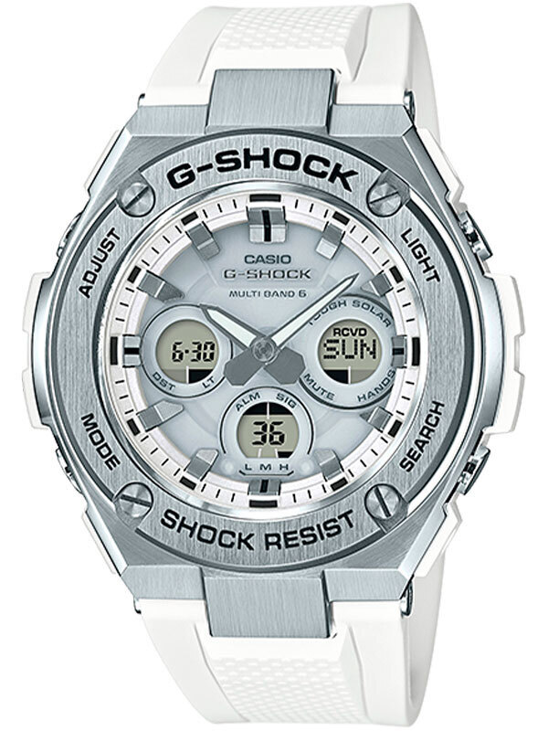 Кварцевые часы. Аналогово-цифровой циферблат. Технология Tough Solar, питание от солнечной энергии. Индикатор низкого заряда батареи. Функция энергосбережения. Время работы аккумулятора без подзарядки при включенной функции сохранения энергии 18 месяцев. Водостойкость WR 200. Автоматическая светодиодная супер подсветка. Настраиваемая длительность подсветки (1.5 или 3 секунды). Послесвечение. Ударопрочный корпус защищает механизм от ударов и вибрации. Технология Multi Band 6 позволяет корректировать время с помощью радиосигнала на территории почти всей Европы, США, Японии и Китая. Мировое время 31 часовая зона (48 городов + всеобщее скоординированное время). Функция летнего времени. Возможность одновременного просмотра текущего времени и времени выбранной часовой зоны. Секундомер 1/100. Режимы измерения: прошедшее время, промежуточное время, время 1го-2го места. Таймер обратного отсчета до 100 минут ( 1-секундное возрастание и 1-минутное возрастание). 5 будильников (1 с функцией повтора). Ежечасный сигнал. Автоматический календарь (до 2099 года). 12/24х часовой формат времени. Функция включения/отключения звука кнопок. Функция перемещения стрелок. Минеральное стекло. Корпус выполнен из нержавеющей стали. Размеры корпуса 49.3 мм х 55.9 мм х 15.3 мм. Каучуковый ремешок.