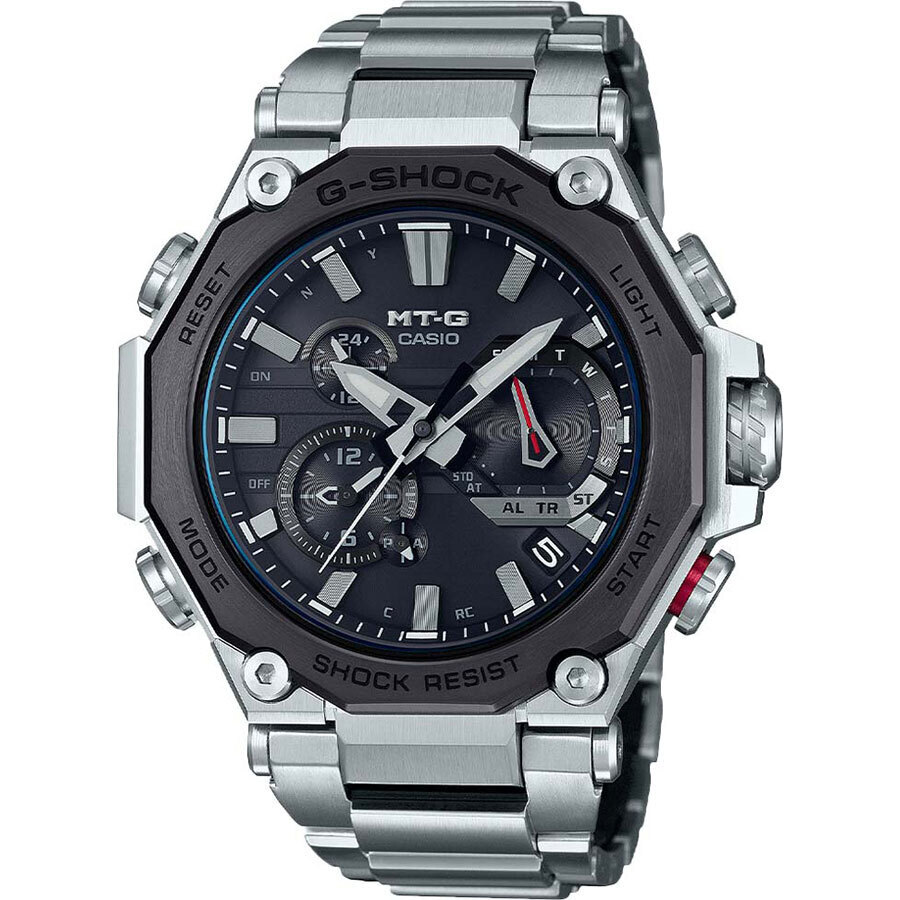Мужской кварцевый хронограф на солнечной батарейке. Время работы аккумулятора без подзарядки - 5 месяцев, при включенной функции сохранения энергии - 29 месяцев. Сверхъяркая подсветка. Неоновый дисплей. Часы оснащены технологией Bluetooth. Если часы подключены к смартфону, время устанавливается автоматически и отображается текущее время. Отображение даты и дня недели. Функция мирового времени - 27 часовых поясов. Второй часовой пояс. Прием радиосигнала (Европа, США, Япония, Китай). Функция секундомера на 24 часа. Таймер - время можно предварительно настроить от 1 секунды и до 100 часов. Часы могут затем автоматически начать отсчет в обратную сторону в установленное время. Идеальное решение для людей, которым необходимо ежедневно принимать лекарства или выполнять промежуточные упражнения (тренировки). Ежедневный будильник. Автоматическая ручная настройка. Технология Smart Access. Черный циферблат. Ударопрочная конструкция защищает от ударов и вибрации. Углерод армированный корпус выполнен из нержавеющей стали и карбона. Размер корпуса составляет 55,1 x 51 x 15,9 мм. Стальной браслет с пластиковыми вставками, тройная раскладывающаяся застежка с предохранительной защелкой. Устойчивое к возникновению царапин сапфировое стекло с антибликовым покрытием. Водостойкость WR 200 (погружение с аквалангом). Вес примерно 156 гр.