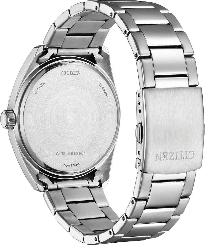 Мужские кварцевые аналоговые наручные часы. Basic collection. Калибр механизма G112. Центральные часовая, минутная и секундная стрелки. Индикация даты в положении 3 ч. Зелёный циферблат с часовыми метками в виде штрихов. Стрелки и часовые метки с люминесцентным покрытием, которое светится в темноте после непродолжительного воздействия света. Стальной корпус диаметром 41 мм, толщиной 10 мм. Устойчивое к мелким механическим повреждениям минеральное стекло. Стальной браслет с раскладывающейся застежкой. Водозащита WR 50 (мытьё рук, дождь). Вес около 131 г.