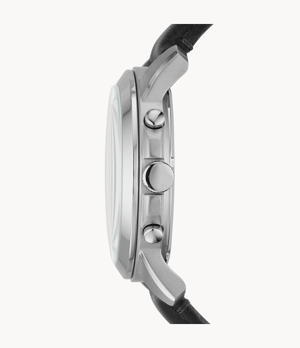 Кварцевый хронограф. Стальной корпус. Кожаный ремешок. Диаметр корпуса 44 мм, толщина 12 мм.