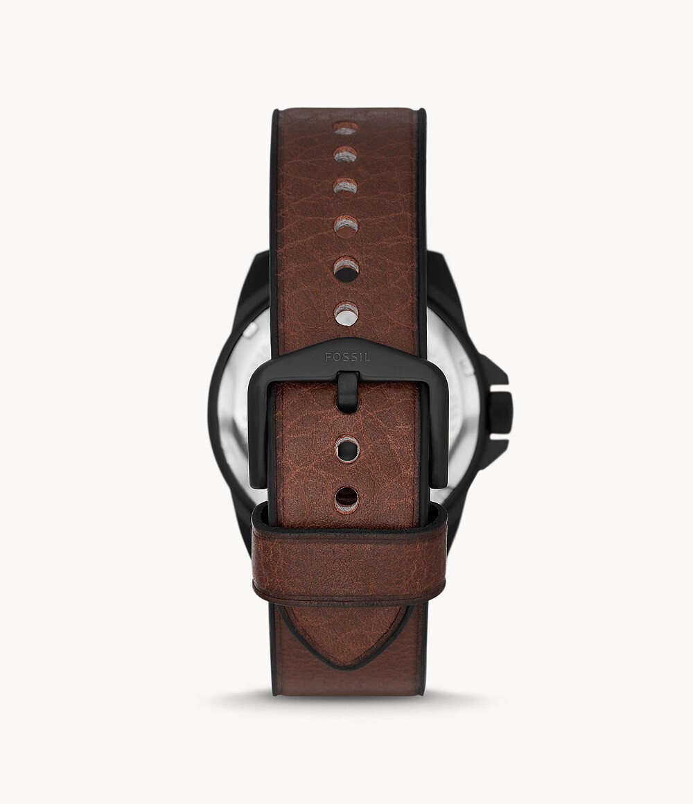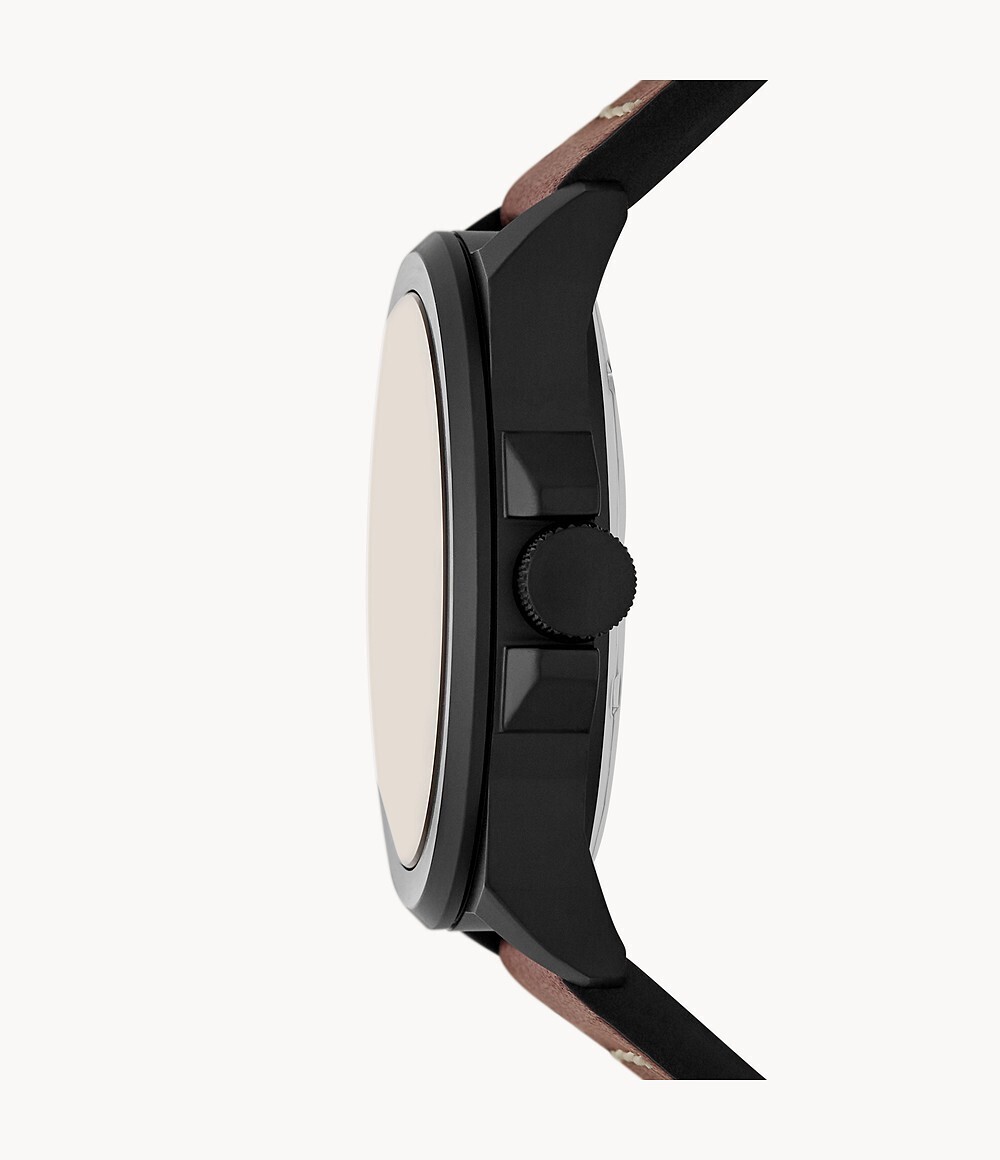 Мужские кварцевые наручные часы Fossil FS5914. Ремешок из эко-кожи. Стальной корпус. Водонепроницаемость 10WR. Минеральное стекло. Календарь. Люминисцентное покрытие стрелок.