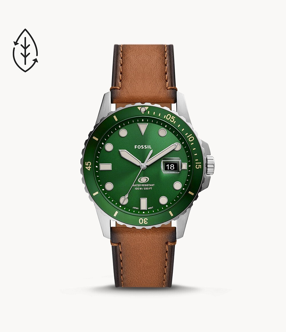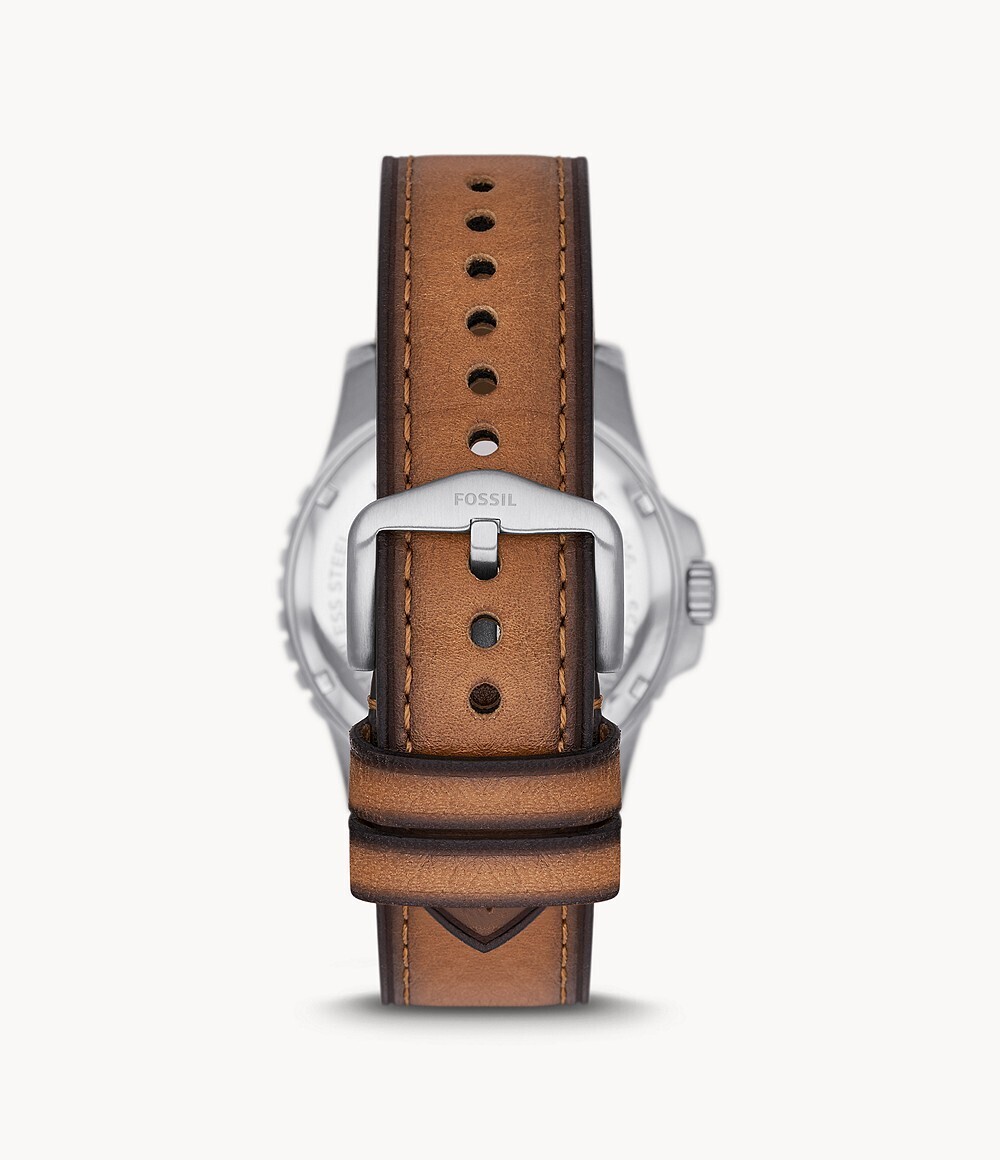 Мужские кварцевые наручные часы Fossil FS5942. Ремешок из эко-кожи. Стальной корпус. Водонепроницаемость 5WR. Минеральное стекло. Календарь. Люминисцентное покрытие стрелок.