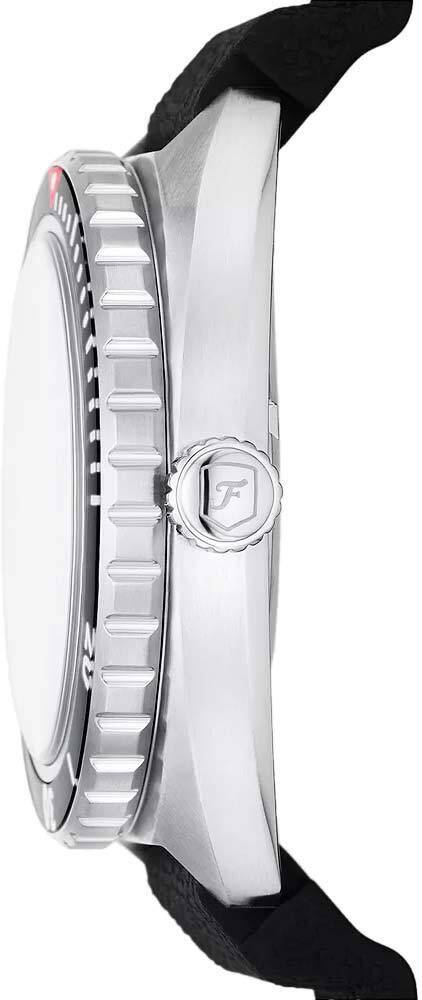 Мужские кварцевые аналоговые наручные часы. Коллекция Breaker. Центральные часовая, минутная и секундная стрелки. Чёрный циферблат с часовыми метками в виде точек и треугольников. Стрелки и метки с люминесцентным покрытием, которое светится в темноте после непродолжительного воздействия света. Окошко даты в положении 6 ч. Круглый стальной корпус диаметром 42 мм, толщиной 13 мм. Рифленая переводная головка. Рифленый безель с минутной шкалой. Устойчивое к мелким механическим повреждениям минеральное стекло. Чёрный пластиковый ремешок с классической застежкой buckle. Водозащита 200WR (любительский дайвинг).