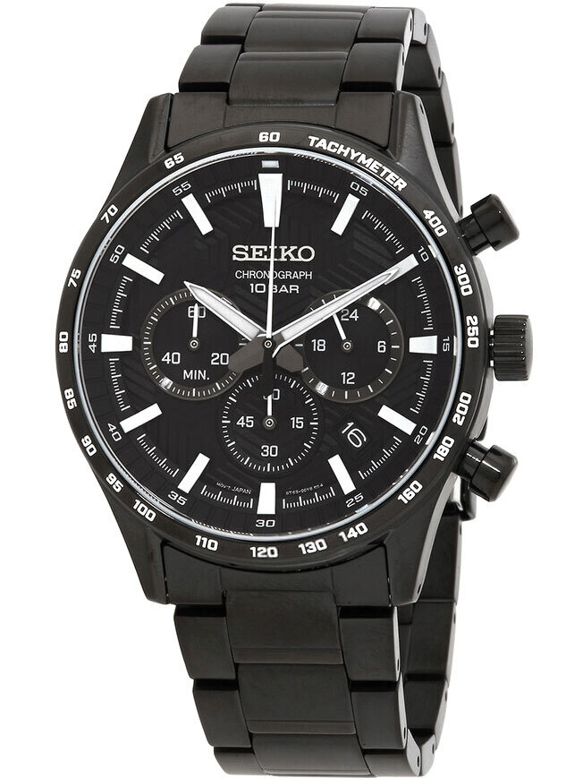 Мужские кварцевые аналоговые наручные часы-хронограф с секундомером и тахиметриченской шкалой. Секундомер до 1ч, точность 1/5с. Калибр механизма 8T63. Центральные часовая и минутная стрелки, секундная стрелка вынесена на отдельный малый циферблат в позиции 6 ч. Апертура даты между 4 и 5 часами. Стрелочный указатель времени суток с 24-х часовой шкалой вынесен на дополнительный малый циферблат в позиции 3 ч. Чёрный циферблат с часовыми метками в виде штрихов. Стрелки и метки с люминесцентным покрытием LumiBrite, которое светится в темноте после непродолжительного воздействия света. Корпус из нержавеющей стали с покрытием чёрного цвета. Тахиметрическая шкала на безеле. Диаметр корпуса 43 мм, толщина 11,6 мм. Рифлёная переводная головка. Завинчивающаяся задняя крышка. Устойчивое к возникновению мелких царапин сапфировое стекло. Стальной браслет с покрытием чёрного цвета, раскладывающаяся застежка. Водостойкость WR 100 (плавание и погружение без акваланга). Вес около 158 г.