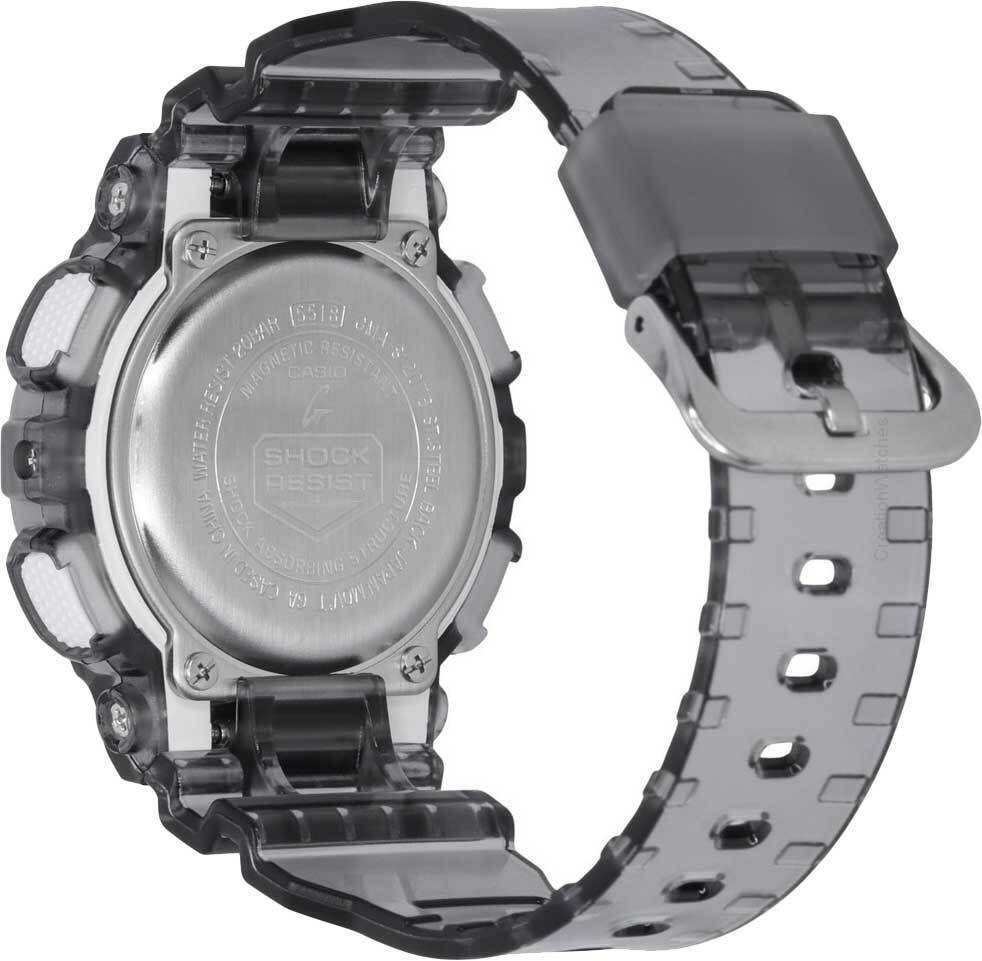Кварцевые аналого-цифровые наручные часы. Серия Casio G-Shock S-Series. Унисекс. Ударопрочная конструкция корпуса защищает механизм часов от ударов и вибрации. Часы созданы с защитой от воздействия магнитных полей. Автоматическая светодиодная подсветка — при недостаточном освещении поворот руки обеспечит автоматическое включение подсветки. Настраиваемое послесвечение 1,5 с или 3с. Необритовое светонакопительное покрытие стрелок обеспечивает длительное послесвечение в темноте после непродолжительного воздействия света. 12/24-часовой формат отображения времени. Секундомер с точностью показаний 1/1000 с и временем измерения 100 ч. Режимы измерения: пройденное время, время круга, промежуточное время. Расчет скорости по выбранной дистанции. Таймер обратного отсчета от 1 мин до 24 ч с автоповтором. Мировое время - 48 городов (29 часовых поясов), всемирное координированное время (UTC). Функция включения/отключения летнего времени, переключение между домашним и мировым временем.. 5 ежедневных будильников, один с функцией Snooze (повтор сигнала), ежечасный сигнал. Автоматический календарь до 2099 года. Круглый корпус из полупрозрачного пластика серого цвета. Размер корпуса 45,9 мм на 49мм, толщина 15,8мм. Устойчивое к мелким механическим повреждениям минеральное стекло. Полупрозрачный пластиковый ремешок серого цвета с классической застёжкой buckle. Батарея рассчитана на 3 года. Водонепроницаемость 200WR (плавание и погружение без акваланга). Вес приблизительно 55 г.