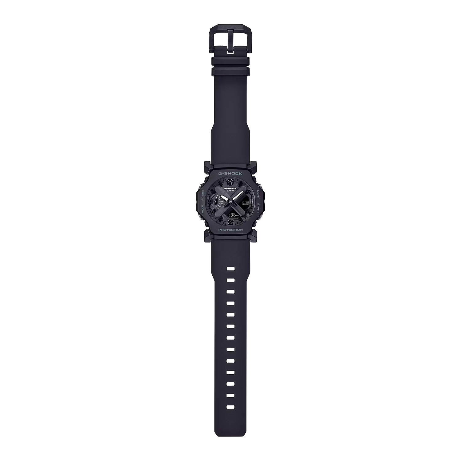 Кварцевые часы. Ударопрочный корпус защищает механизм часов от ударов и вибрации. Двойная светодиодная подсветка. Настраиваемая длительность подсветки (1.5 или 3 секунды), послесвечение. Мировое время: 31 часовая зона (48 городов). Секундомер на 24 часа с точностью измерения 1/100 секунды. Таймер на 24 часа с автоповтором. 5 ежедневных будильников, ежечасный сигнал. Функция перемещения стрелок. Функция отключения/включения звука. Автоматический календарь. 12/24-часовой формат времени. Корпус выполнен из высокопрочного полимерного материала. Размеры корпуса 42 мм x 45 мм x 12 мм. Ремешок выполнен из полимерного материала, стандартная застежка. Прочное минеральное стекло устойчивое к мелким механическим повреждениям. Водостойкость WR 200 (плавание с погружением). Вес 49 г. Срок службы батареи: 3 года.