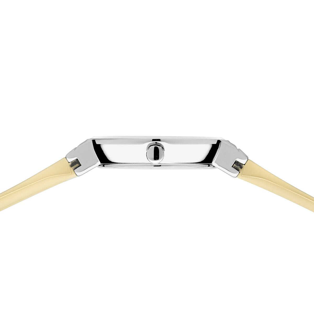 Женские аналоговые кварцевые наручные часы. Classic Collection. Центральные часовая и минутная стрелки. Жёлтый циферблат с часовыми метками в виде кристаллов. Круглый стальной полированный корпус. Диаметр корпуса 29 мм, толщина 6 мм. Устойчивое к возникновению мелких царапин плоское сапфировое стекло. Бежевый пластиковый ремешок с классической застёжкой buckle. Ширина ремешка 14 мм. Водонепроницаемость WR30 (защита от брызг).