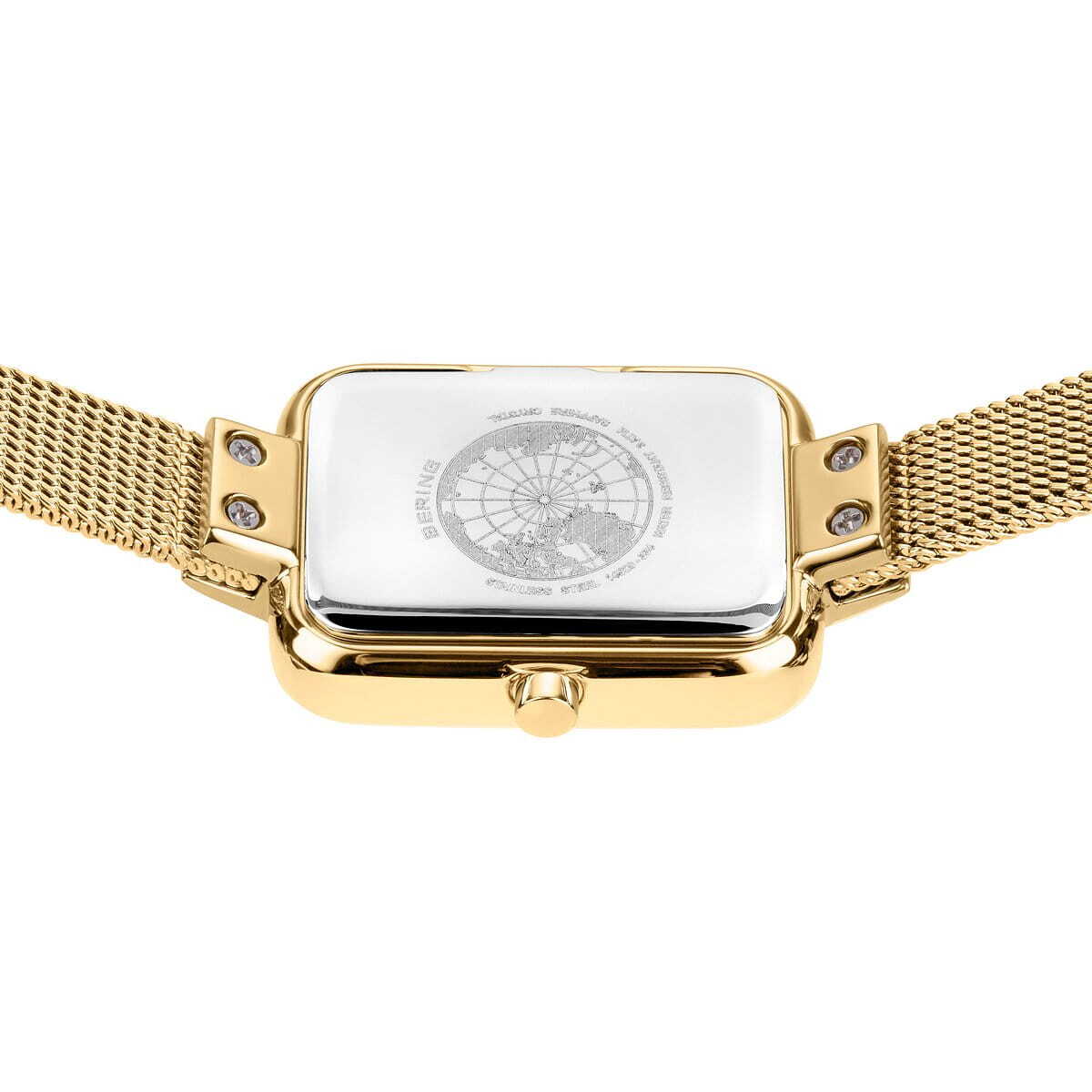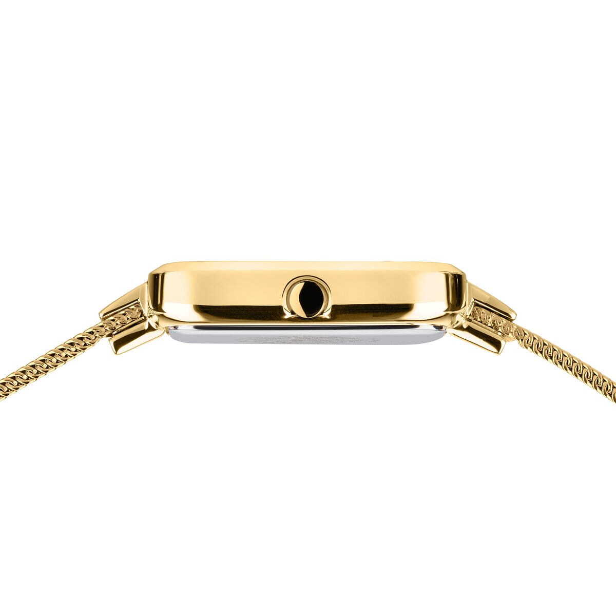 Женские кварцевые наручные часы с аналоговым отображением времени. Серия Petite Square. Механизм Miyota 5Y20. Центральные часовая и минутная стрелки золотистого цвета. Белый циферблат. Прямоугольный стальной полированный корпус с IP покрытием цвета жёлтого золота. Размер корпуса 20 мм на 35 мм, толщина 8 мм. Устойчивое к возникновению мелких царапин плоское сапфировое стекло. Стальной браслет миланского плетения с IP покрытием цвета жёлтого золота. Ширина браслета 8 мм, длина браслета 175 мм. Водонепроницаемость WR30 (защита от брызг).