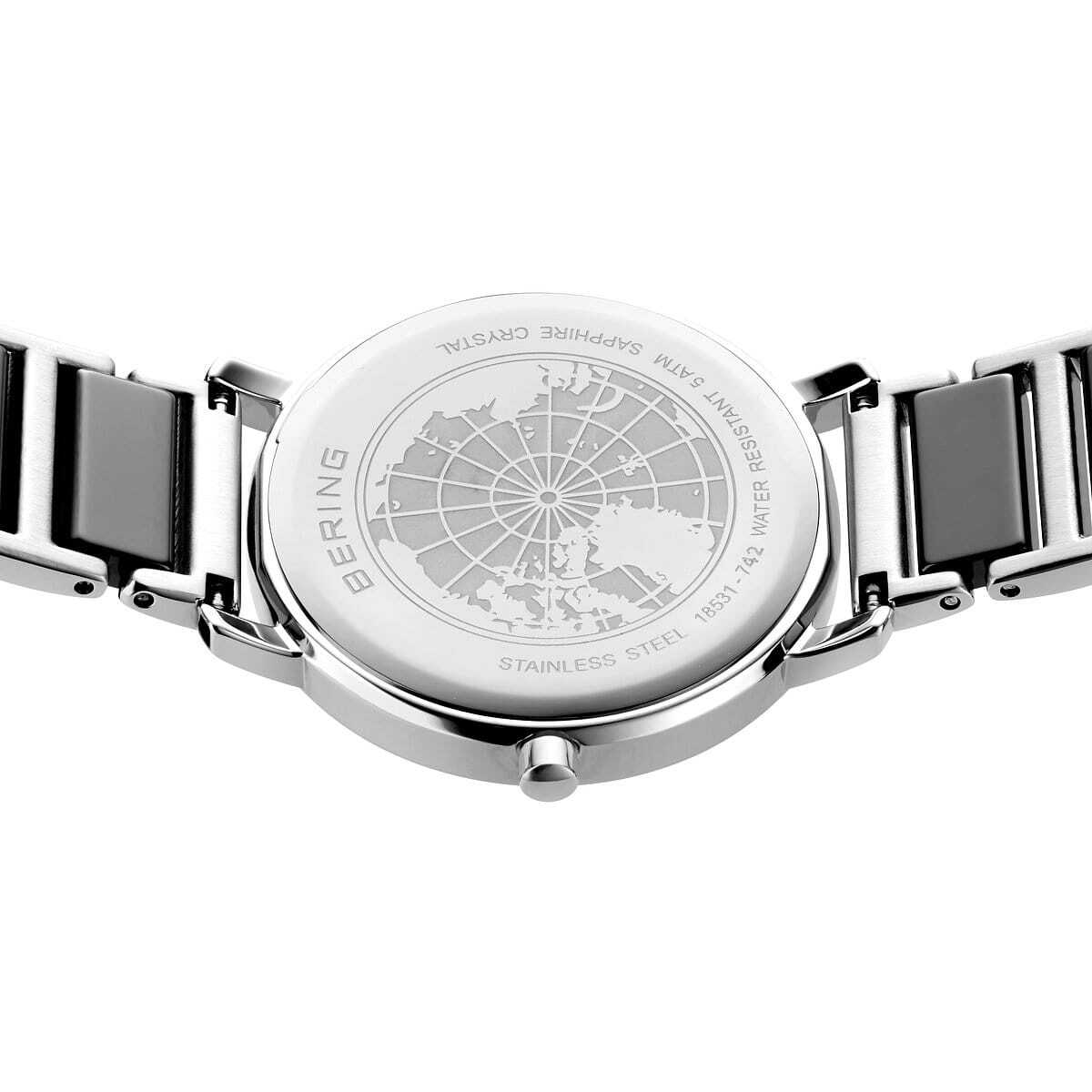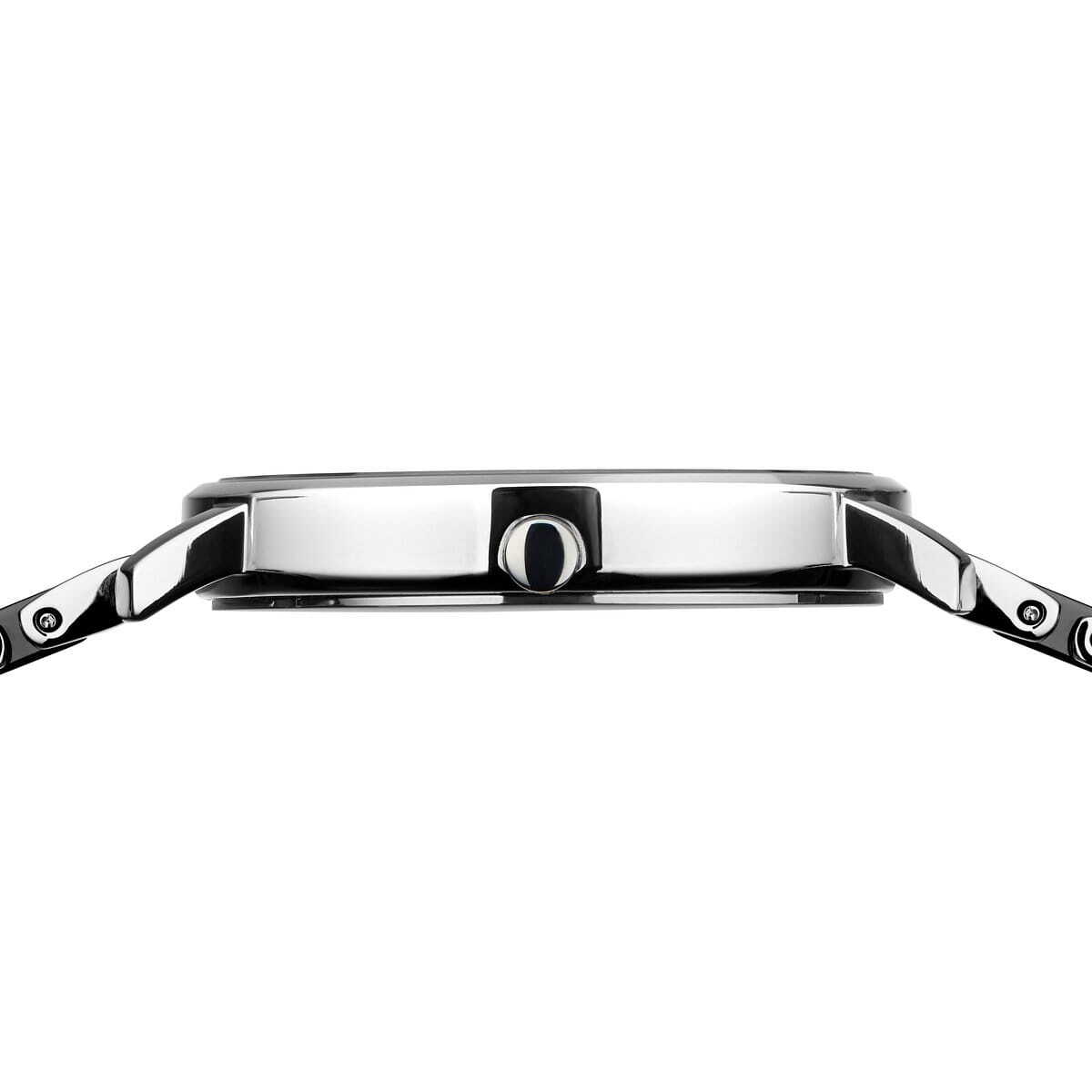 Женские кварцевые аналоговые наручные часы. Серия Classic Collection Slim Ceramic. Центральные часовая и минутная стрелки. Чёрный циферблат. Круглый стальной полированный корпус. Диаметр корпуса 31 мм, толщина 6 мм. Устойчивое к возникновению мелких царапин плоское сапфировое стекло. Стальной браслет с керамическими вставками черного цвета, застёжка клипса-бабочка. Ширина браслета 15 мм, длина браслета 162 мм. Водонепроницаемость WR50 (мытьё рук, дождь).