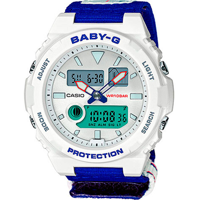 Женские кварцевые многофункциональные часы. Центральные часовая и минутная стрелки. Аналоговое и электронное отображение времени. Дополнительный электронный циферблат мирового времени. Автоматическая светодиодная подсветка. Фазы Луны. Датчик приливов и отливов. Секундомер с точностью 1/100 секунды, измерения до 24 часов. Таймер с шагом 1 секунда, измерение 24 часа. 4 типа будильника: ежедневный будильник, датированный будильник, ежемесячный будильник, будильник для каждого дня определенного месяца. Функция повтора будильника. Автоматический календарь. 12/24х часовой формат времени. Ударопрочный корпус выполнен изполимерного материала. Размеры корпуса 42 мм x 46 мм x 13 мм. Текстильный ремешок на липучке. Прочное, устойчивое к царапинам минеральное стекло. Водостойкость WR 100 (плавание без погружения). В комплекте дополнительный резиновый ремешок белого цвета.