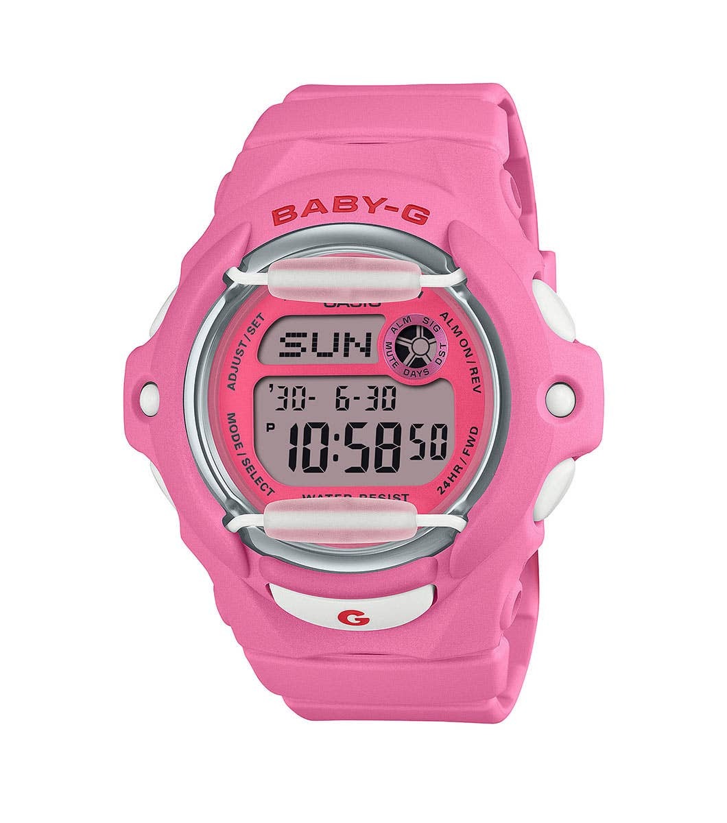 Женские кварцевые электронные наручные часы. Серия Casio Baby-G Cherry on Top. Модель отличается яркими вишневыми оттенками, вдохновленными фразой «Cherry on top». Противоударный корпус защищает механизм часов от ударов и вибрации. Безельные протекторы защищают циферблат часов от повреждений. Светодиодная подсветка с функцией послесвечения. При активации подсветки на циферблате появляется изображение вишенки. Мировое время – 30 городов (29 часовых поясов), автоматический переход на зимнее и летнее время, возможность включения/отключения данной функции. 12-ти и 24-х часовой формат отображения времени. Записная книжка на 25 номеров -каждая запись может включать в себя текст из 8 букв и 12 цифр. Счетчик дней - отображает число дней между текущей и какой-либо другой датой. Секундомер с точностью показаний 1/100 с и временем измерения 24 ч. Таймер обратного отсчета от 1 мин до 24 ч . 5 ежедневных будильников, ежечасный сигнал. Функция включения/выключения звука кнопок. Автоматический календарь до 2099г. Круглый корпус из полимерного пластика яркого розового цвета. Размер корпуса 45,9 мм на 42,6мм, толщина 15,4мм. Устойчивое к мелким механическим повреждениям минеральное стекло. Розовый пластиковый ремешок с классической застёжкой. Батарейка рассчитана на 3 года. Врдозащищённость 200WR (плавание и погружение без акваланга). Вес около 43 г.