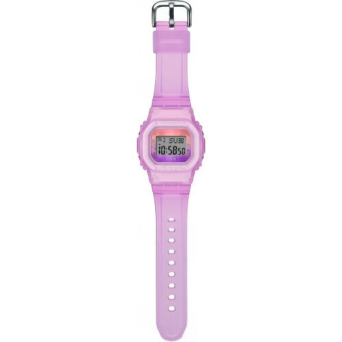 Женские электронные часы. Электролюминесцентная подсветка (цвет: зеленый) с функцией послесвечения. Фиолетовый циферблат с изображением снежинок. Секундомер с точностью показаний 1/100 секунды и пределом измерения 1 час. Таймер. Мировое время (29 часовых зон (48 городов)). 12/24х часовой формат времени. 5 ежедневных будильников, один с функцией повтора. Ежечасный сигнал. Автоматический календарь. Противоударный корпус выполнен из полимерного материала фиолетового цвета. Размер корпуса составляет 40 x 44,7 x 12,5 мм. Фиолетовый полимерный ремешок, стандартная застежка. Прочное минеральное стекло устойчивое к мелким механическим повреждениям. Водостойкость WR 200 (погружение с аквалангом). Вес примерно 44 гр.