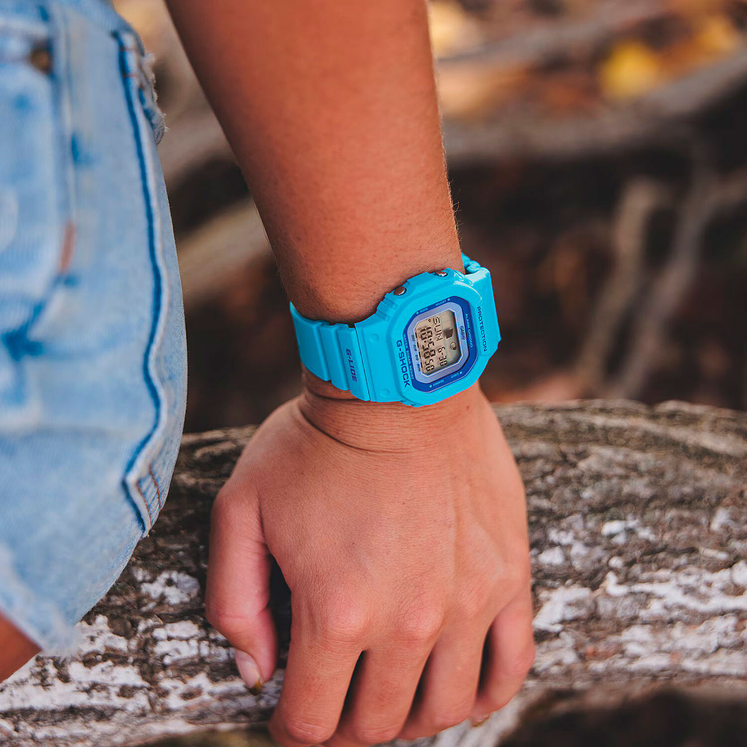 Женские кварцевые часы с цифровым отображением времени. Серия G-Shock G-Lide. Противоударный корпус защищает механизм часов от ударов и вибрации. Светодиодная автоматическая подсветка с функцией послесвечения. При недостаточном освещении поворот руки обеспечит автоматическое включение подсветки дисплея. Световая индикация сигнала (LED-индикатор) - светодиодная лампочка мигает при сигнале будильника, окончании таймера обратного отсчета, секундомера. Отображение возраста и фазы Луны. Графическое отображение сведений о приливах и отливах на заданную дату и время. Мировое время: 29 часовых зон (48 городов), включение/выключение летнего времени. Секундомер с точностью показаний 1/100 секунды и временем измерения 24 часа. Режимы измерения: прошедшее время, промежуточное время, два финишных результата. Таймер обратного отсчета от 1 минуты до 24 часов с автоповтором. Будильник с тремя многофункциональными звуковыми сигналами (один с функцией повтора сигнала Snooze). 12/24-х часовой формат отображения времени. Автоматический календарь до 2099 года. Включение/выключение звука кнопок. Прямоугольный корпус из биопластика (изготавливается из возобновляемых органических ресурсов) голубого цвета. Размер корпуса 45,7мм на 40,5 мм, толщина 11,9 мм. Устойчивое к мелким механическим повреждениям минеральное стекло. Голубой ремешок из биопластика (изготавливается из возобновляемых органических ресурсов), стандартная застежка buckle. Батарейка рассчитана на 3 года. Водонепроницаемость WR200 (плавание и погружение без акваланга). Вес около 41 г.