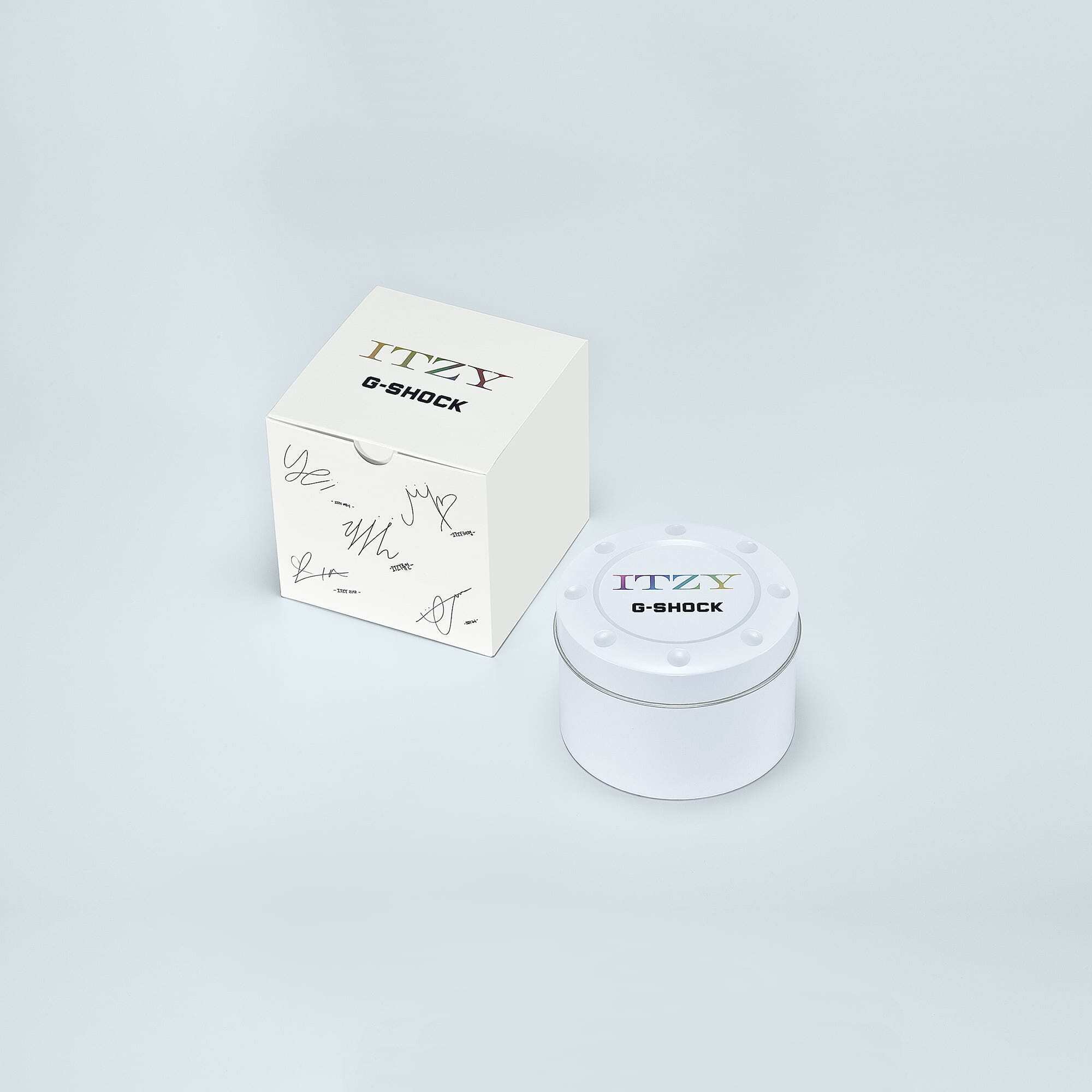 Женские кварцевые аналогово-цифровые наручные часы. Серия G-Shock Limited. Модель выпущена в сотрудничестве с южнокорейской гёрл-группой ITZY жанра K-pop, дебют которой состоялся 12 февраля 2019 года. Циферблат и задняя крышка часов украшены логотипом группы. Корпус и ремешок выполнены из биопластика, который изготавливается из возобновляемых органических ресурсов. Противоударный корпус защищает механизм часов от ударов и вибраций. Двойная светодиодная подсветка обеспечивает подсветку не только цифрового дисплея, но и аналогового циферблата. Настройка продолжительности подсветки 1,5 или 3 секунды, послесвечение. Светящееся покрытие стрелок обеспечивает длительную подсветку в темное время суток после короткого воздействия света. 12-ти и 24-х часовой формат отображения времени. Секундомер с точностью показаний 1/100 с (первый час) и 1 с (после первого часа) и временем измерения 24 часа. Режимы измерения: прошедшее время, промежуточное время, два финишных результата. Таймер обратного отсчета от 1 секунды до 24 часов (с интервалом в 1 секунду) с автоповтором. Мировое время - 31 часовой пояс (48 городов), всемирное координированное время (UTC), включение/отключение летнего времени. 5 ежедневных будильников, ежечасный сигнал. Функция перемещения стрелок. Функция отключения/включения звука кнопок. Автоматический календарь до 2099 года. Пастиковый восьмиугольный корпус бежевого цвета. Размер корпуса 40,2 мм на 46 мм, толщина 11,2мм. Устойчивое к мелким механическим повреждениям минеральное стекло. Бежевый пластиковый ремешок со стандартной застёжкой Buckle. Примерный срок службы батареи 3 года. Для часов создана специальная упаковка с автографами участниц группы и логотипом группы. Водонепроницаемость 200WR (плавание и ныряние без акваланга). Вес около 40 г.