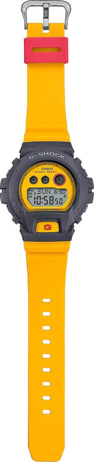 Женские кварцевые электронные наручные часы. Серия G-Shock. Противоударный корпус защищает механизм часов от ударов и вибрации. Электролюминесцентная подсветка освещает весь циферблат, послесвечение. Настраиваемое послесвечение 1,5 или 3с. LED-индикатор (световая индикация сигнала) - лампочка начинает мигать при сигнале будильника, окончании таймера обратного отсчета или секундомера. 3 многофункциональных будильника (1 с повтором сигнала) - ежедневный сигнал, ежемесячный сигнал, сигнал каждый день определенного месяца, на определенную дату, сигнал начала каждого часа. Мировое время – 48 городов (29 часовых поясов), включение/отключение летнего времени. 12-ти и 24-х часовой формат отображения времени. Секундомер с точностью показаний 1/100 с временем измерения 24ч. Режимы измерения: прошедшее время, промежуточное время, два финишных результата. Таймер обратного отсчета от 1 с до 24 ч с автоповтором. Фуеуция включения/отключения звука кнопок. Автоматический календарь до 2099 года. Устойчивое к мелким механическим повреждениям минеральное стекло. Круглый корпус из полимерного пластика чёрного цвета. Размеры корпуса 46 мм на 48,8мм, толщина 12,7мм. Стальная задняя крышка крепится на 4-х винтах. Жёлтый ремешок из полимерного пластика, стандартная застёжка buckle. Приблизительный срок службы батареи 5 лет. Водонепроницаемость 200 WR (плавание и погружение без акваланга). Вес примерно 49 г.