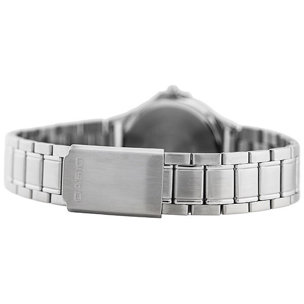 Женскиее кварцевые аналоговые наручные часы. Центральные часовая, минутная и секундная стрелки. Голубой циферблат с часовыми метками в виде штрихов. Стрелки и метки с люминесцентным покрытием, которое светится в темноте после непродолжительной зарядки на свету. Стрелочный указатель даты вынесен на дополнительный малый циферблат в позиции 3 ч. Стрелочный указатель дня недели вынесен на дополнительный малый циферблат в позиции 9 ч. 12-ти-24-х часовой формат отображения времени (стрелочный указатель на дополнительном малом циферблате в позиции 6 ч). Переводная головка с защитой. Устойчивое к мелким механическим повреждениям минеральное стекло. Стальная задняя крышка. Стальной браслет, раскладывающаяся застёжка. Водозащищенность 30WR (брызги). Вес около 62 г