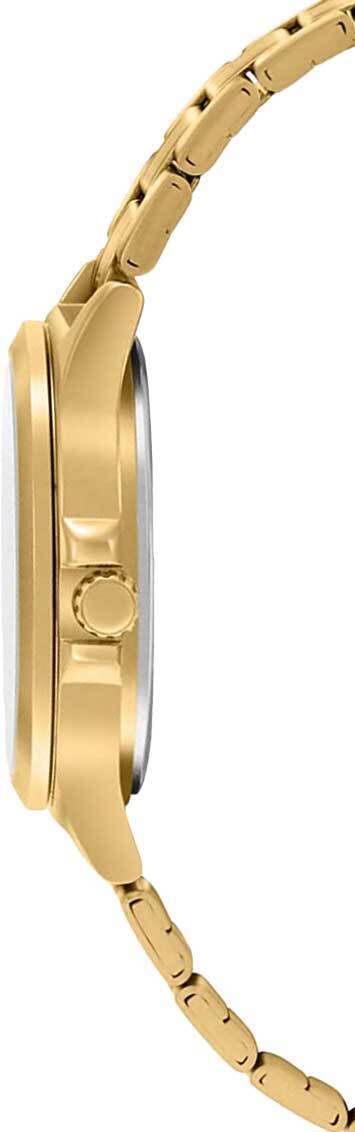 Женские кварцевые аналоговые наручные часы. Серия Casio Collection. Центральные часовая, минутная и секундная стрелки. Жёлтый циферблат с часовыми метками в виде штрихов. Стрелки с люминесцентным покрытием, которое светится в темноте после непродолжительного воздействия света. 12-ти и 24-х часовой формат отображения времени (в положении 6 ч), число (в положении 3 ч) и день недели (в положении 9 ч) вынесены на отдельные малые циферблаты. Значение даты меняется до 31. Для месяцев, у которых количество дней меньше 31, необходимо корректировать значение вручную. Устойчивое к мелким механическим повреждениям минеральное стекло. Круглый стальной корпус с покрытием цвета розового золота. Размер корпуса 38 мм на 33,2 мм, толщина 8,2 мм. Переводная головка с защитой. Стальной браслет с покрытием цвета розового золота, тройная раскладывающаяся застежка. Водозащита 30WR (брызги). Вес около 62 г.