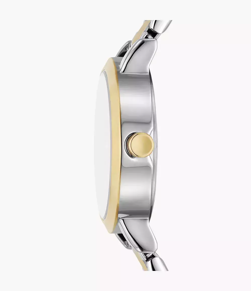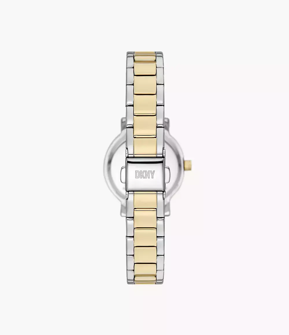 Женские аналоговые кварцевые наручные часы. Коллекция Soho. Центральные часовая, минутная и секундная стрелки. Синий циферблат с часовыми метками в виде точек (кристаллов). Круглый корпус из нержавеющей стали, безель с покрытием цвета жёлтого золота. Диаметр корпуса 28 мм. Устойчивое к мелким механическим повреждениям минеральное стекло. Стальной браслет с частичным покрытием цвета жёлтого золота, раскладывающаяся застежка с 2 кнопками. Водозащищённость 30WR (брызги).
