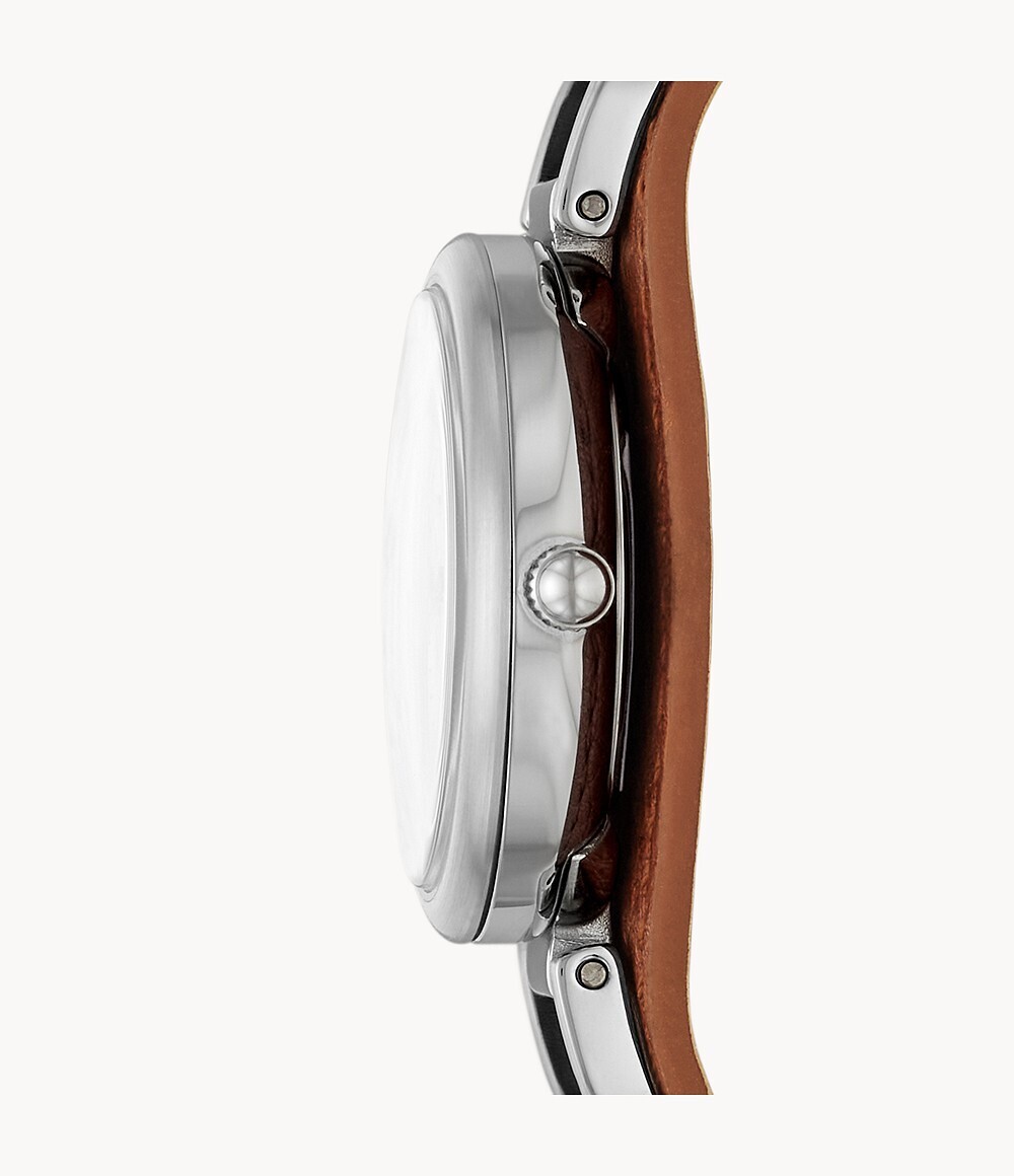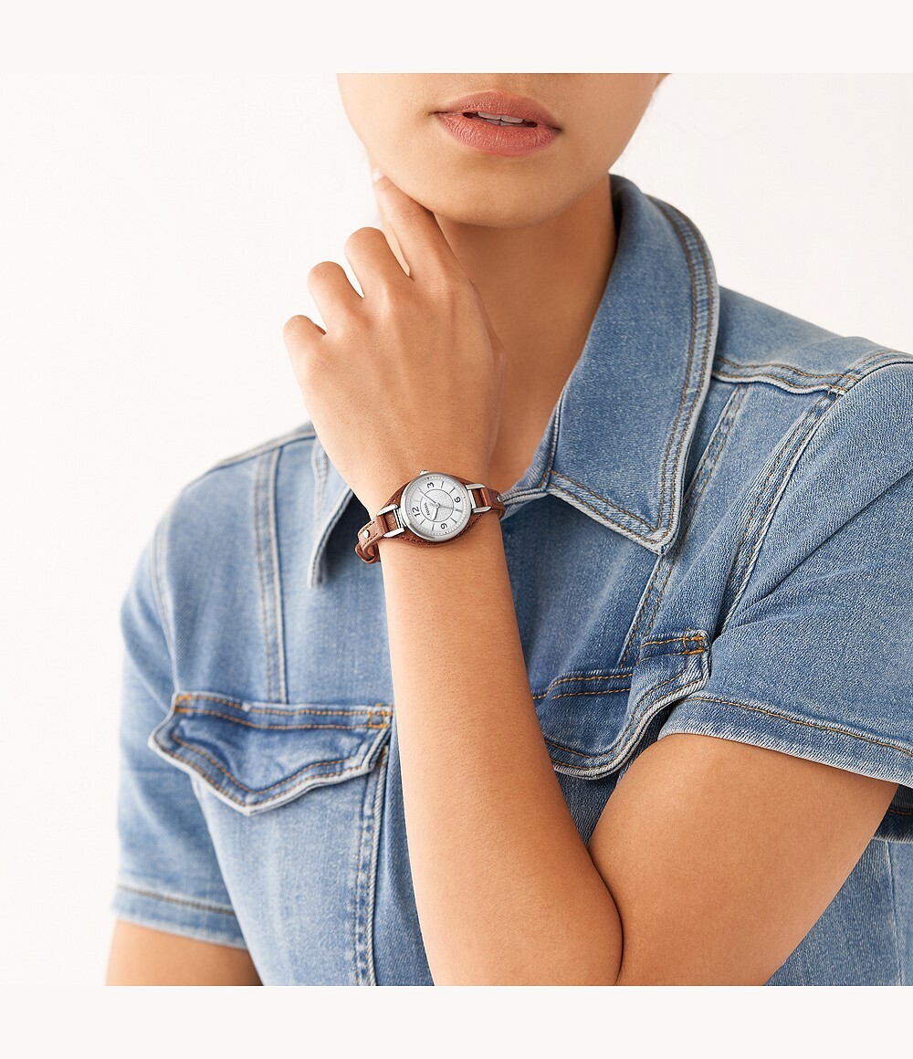 Женские кварцевые наручные часы Fossil ES5213. Ремешок из эко-кожи. Стальной корпус. Водонепроницаемость 5WR. Минеральное стекло. Люминисцентное покрытие стрелок.